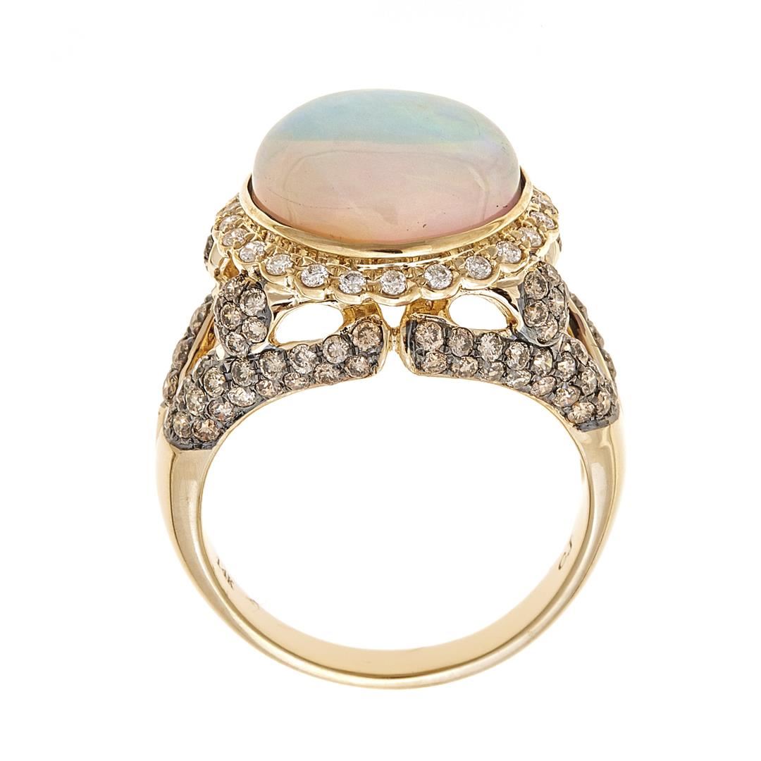 One lady's ring featuring: 14KT yellow gold weighing 6.21 grams containing one ethiopian opal weighing 4.03ct and diamonds weighing 1.21ctw.
