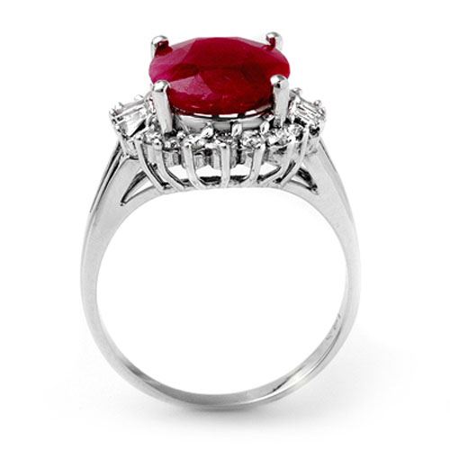13301 - REF-103K6W ---- 4.04 CTW Ruby & Diamond Ring 18K White Gold ---- Luxury Designer Brand Ring Appraised at $7,400 Certificate Number US13301 18k White gold, Ring Size is 6.5, Ring measuring approx. 1/2" x 5/8" , weighing in total approx. 5.7 grams. Made in the USA and is stamped 18k, Main stone 3.48 carat total weight containing 1 pieces of Mid-Opaque-Deep Red color with AAA quality Oval shape cut Ruby , Stone #2 0.56 carat total weight containing 20 pieces of H-I color with VS/SI quality Round shape cut Diamond