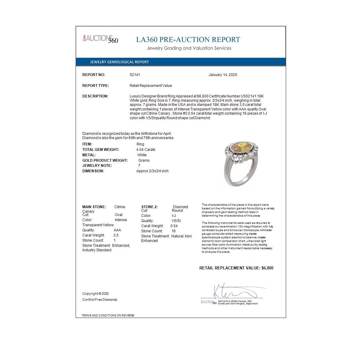 REF-154Y5X - SKU: 52141 ---- 4.04 ctw Canary Citrine & Diamond Ring 18K White Gold