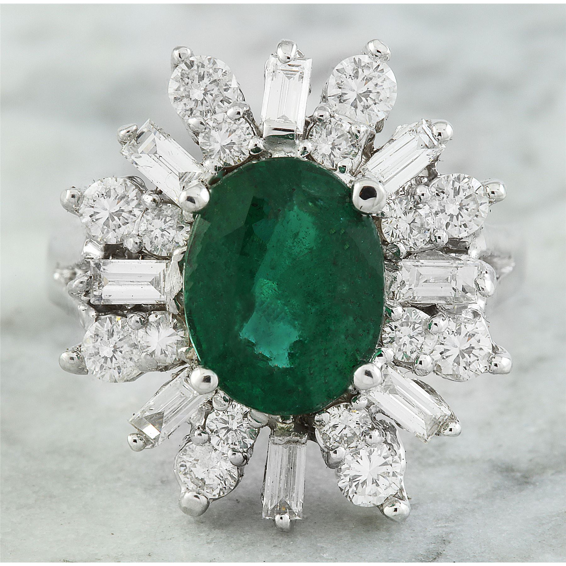 4.05 CTW Emerald 14K White Gold Diamond Ring