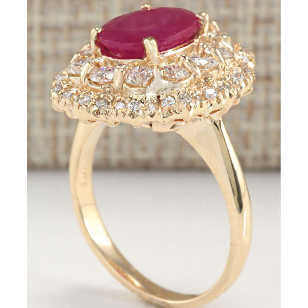 4.05 CTW Natural Ruby And Diamond Ring In 18K Yellow Gold