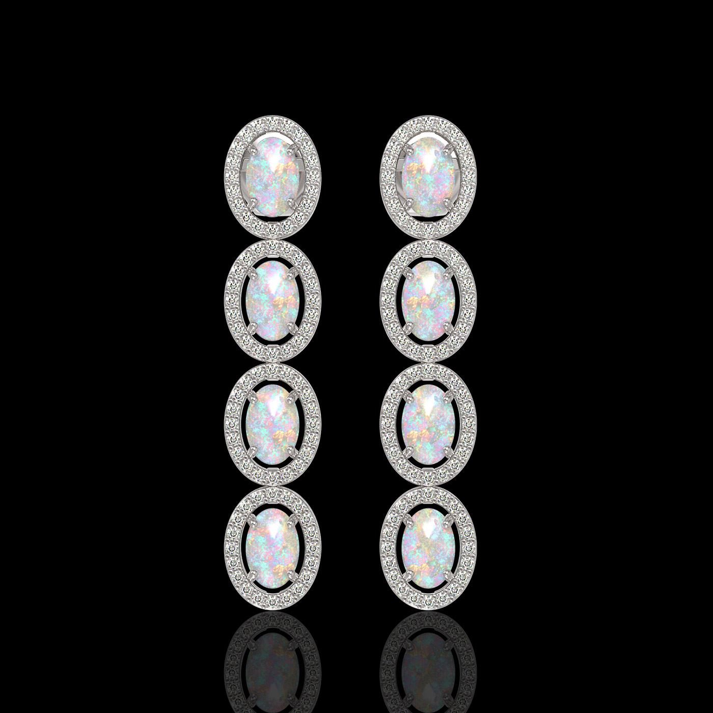 REF-143R6K - SKU: 40517 ---- 4.05 ctw Opal & Diamond Micro Pave Halo Earrings 10k White Gold