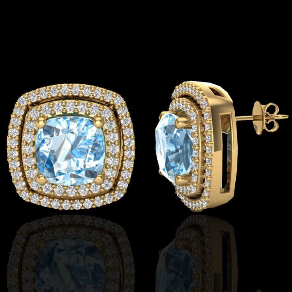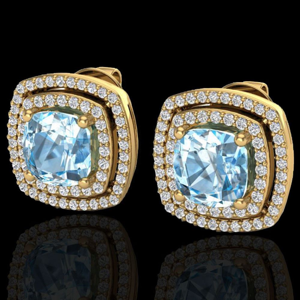 REF-104K4Y - SKU: 20158 ---- 4.05 ctw Sky Blue Topaz & Micro VS/SI Diamond Earrings 18k Yellow Gold