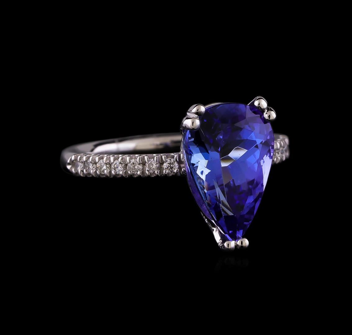 One ring : 14KT white gold weighing 3.05gm containing one tanzanite center stone with a total weight of 4.05ct. and diamonds weighing 0.14ctw.