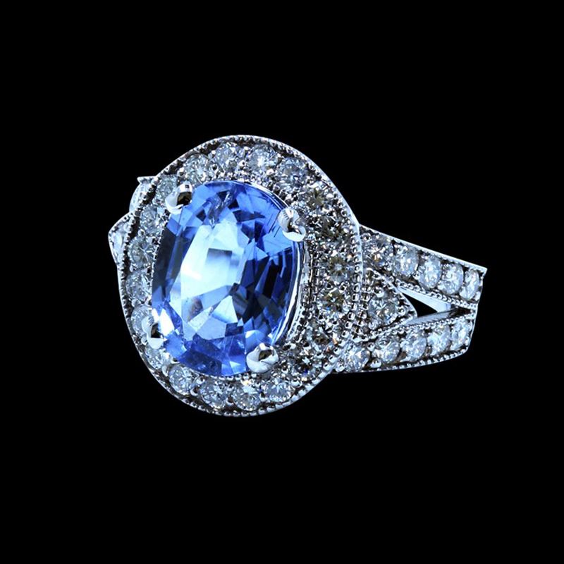 14K WHITE GOLD NATURAL COPPER BEARING PARIBA TOURMALINE RING :6.93 GRaMS/AGTA/DIAMOND :2.24CT / COPPER BEARING PARIBA TOURMALINE :4.05CT/#GVR1253