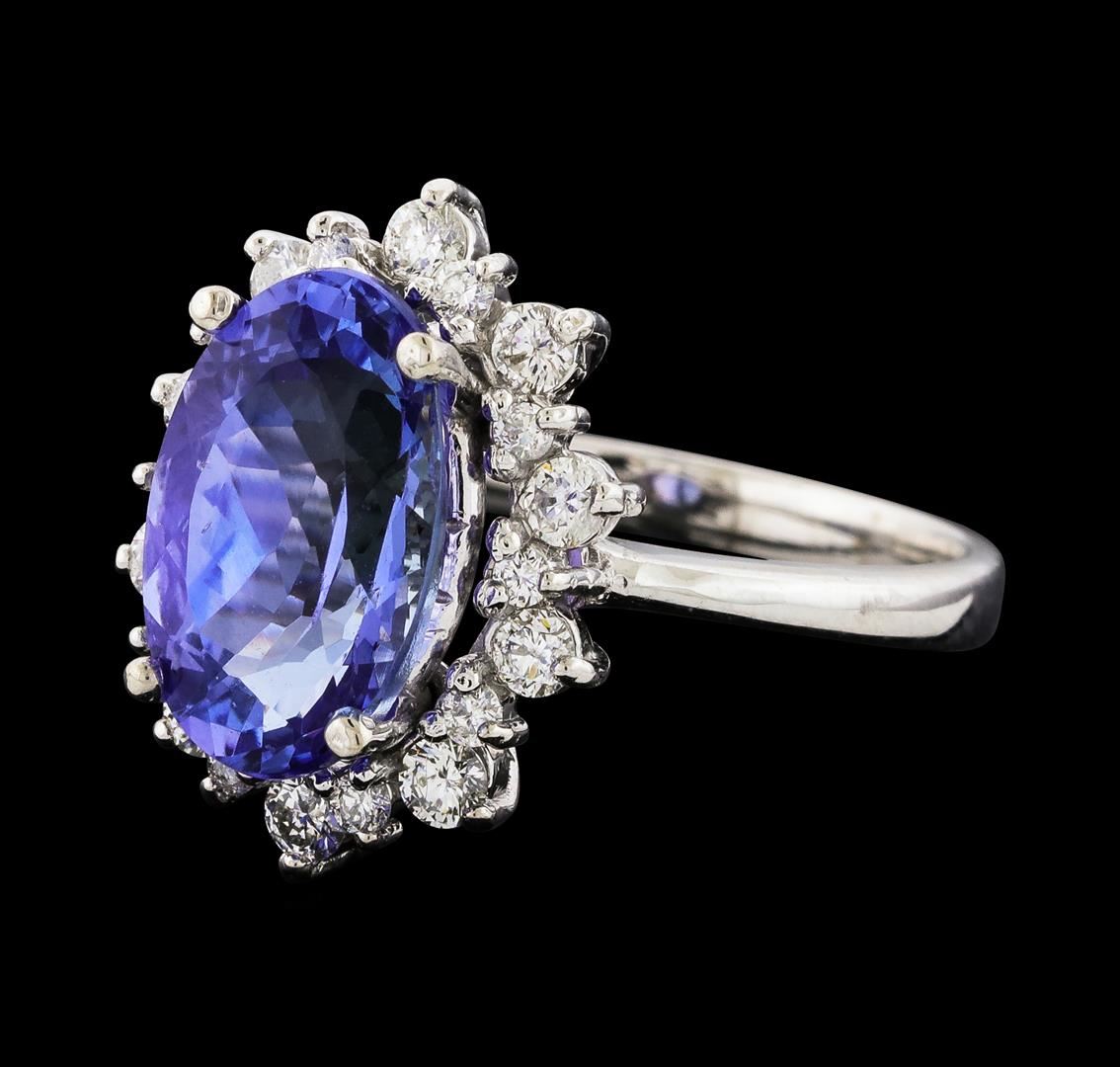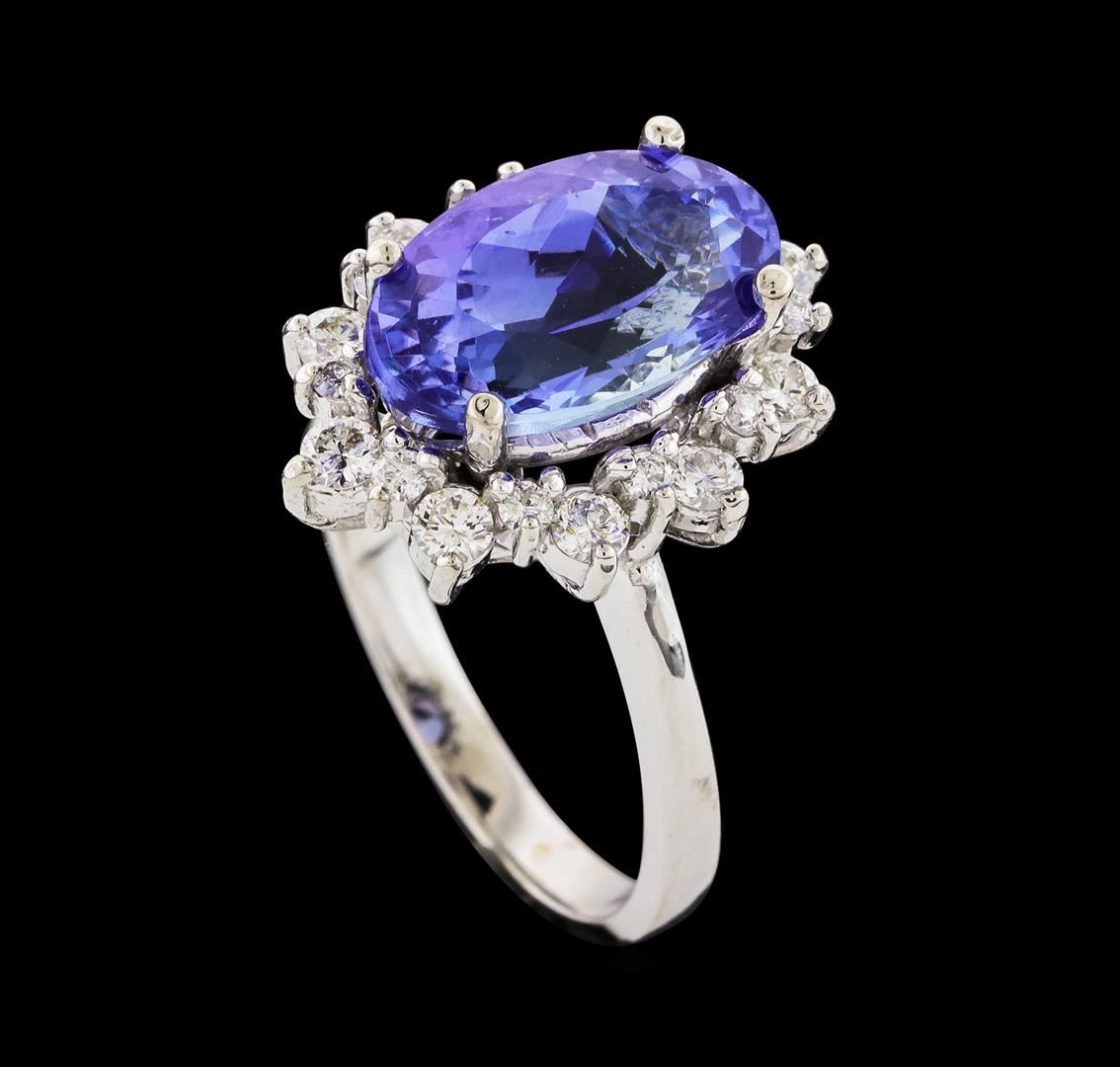 One Tanzanite and Diamond Ring featuring: 14KT White Gold with a total weight of 4.52 grams, One Tanzanite stone with a total weight of 4.06ct, and 20 Diamonds with a total weight of 0.59ctw.