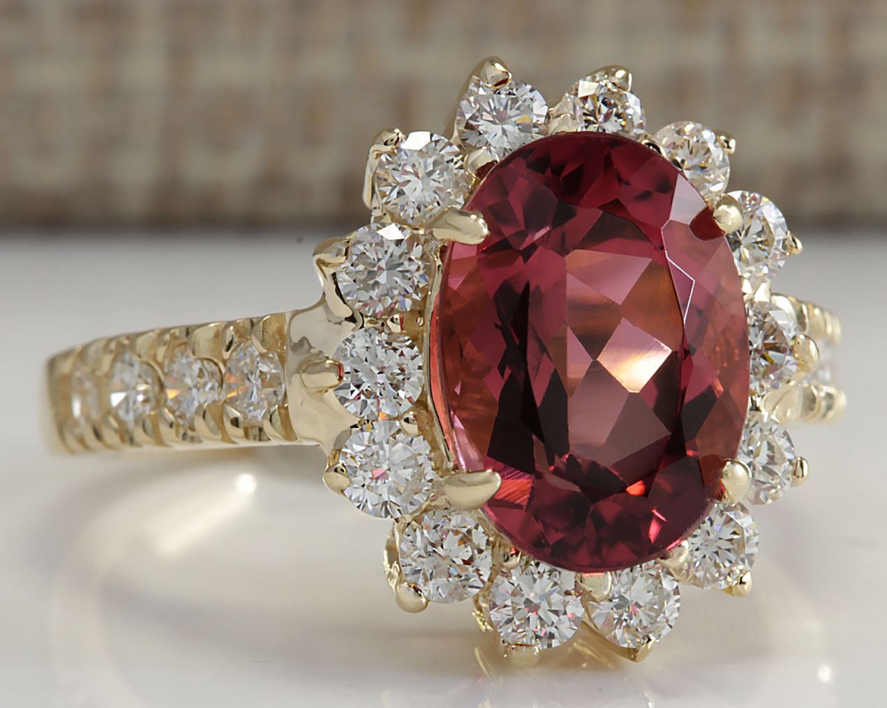 4.07 CTW Natural Pink Tourmaline And Diamond Ring 18K Solid Yellow Gold