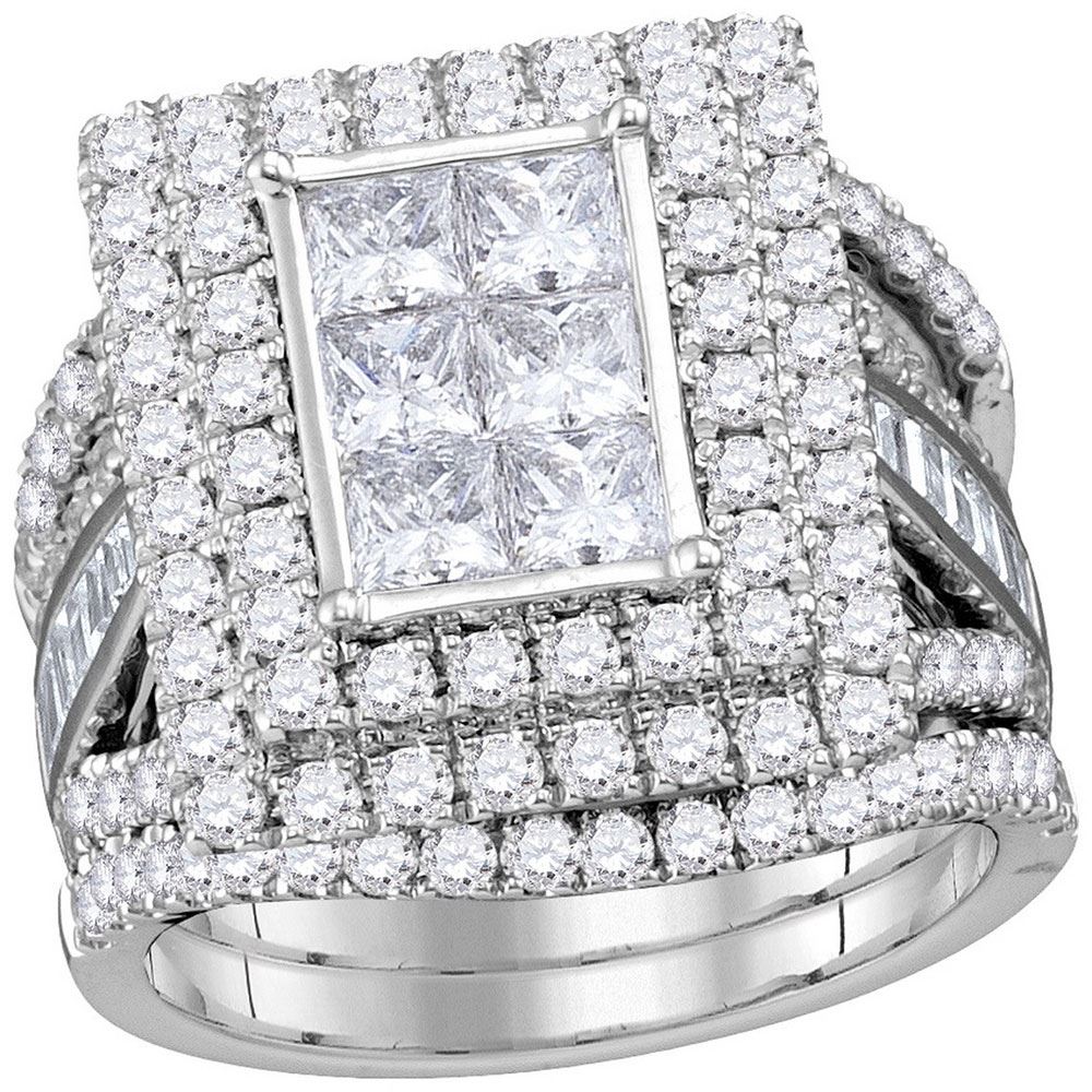 REF-419K9W- SKU: GD113068 ---- 4.07 CTW Princess Diamond Rectangle Cluster Bridal Ring 14KT White Gold