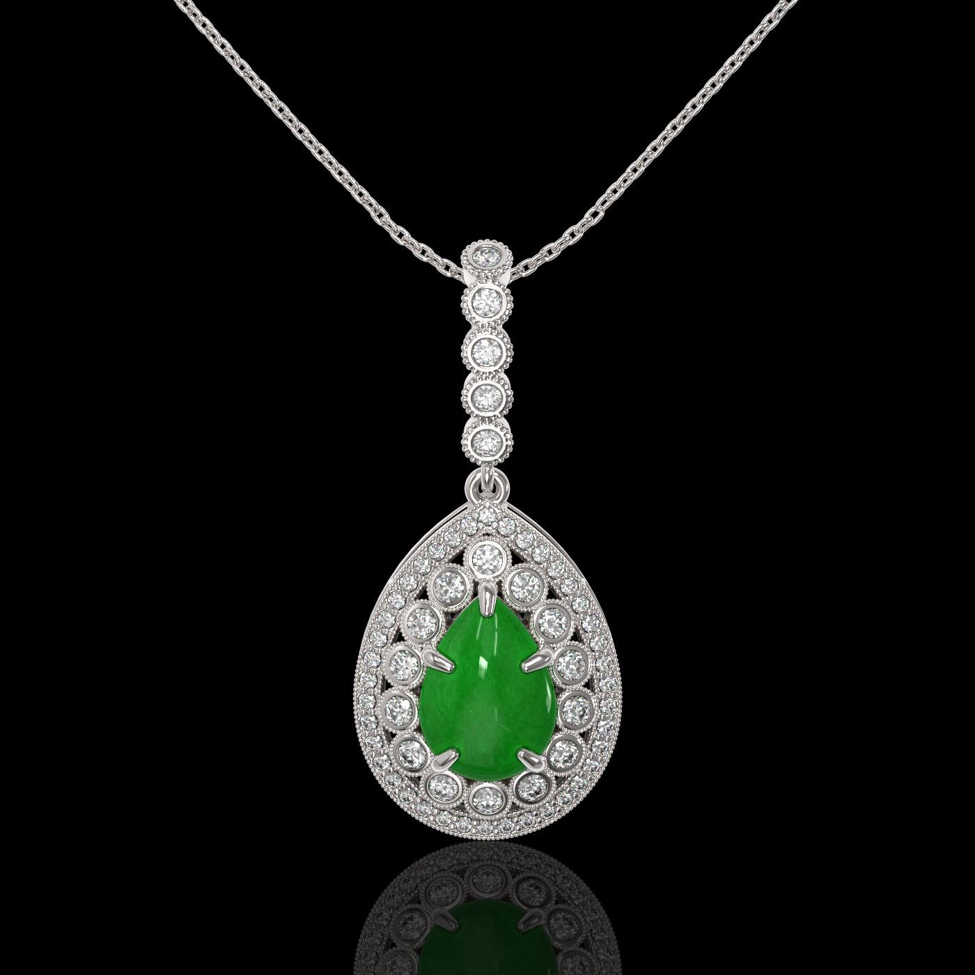 REF-118A2N - SKU: 46161 ---- 4.07 ctw Jade & Diamond Victorian Necklace 14K White Gold