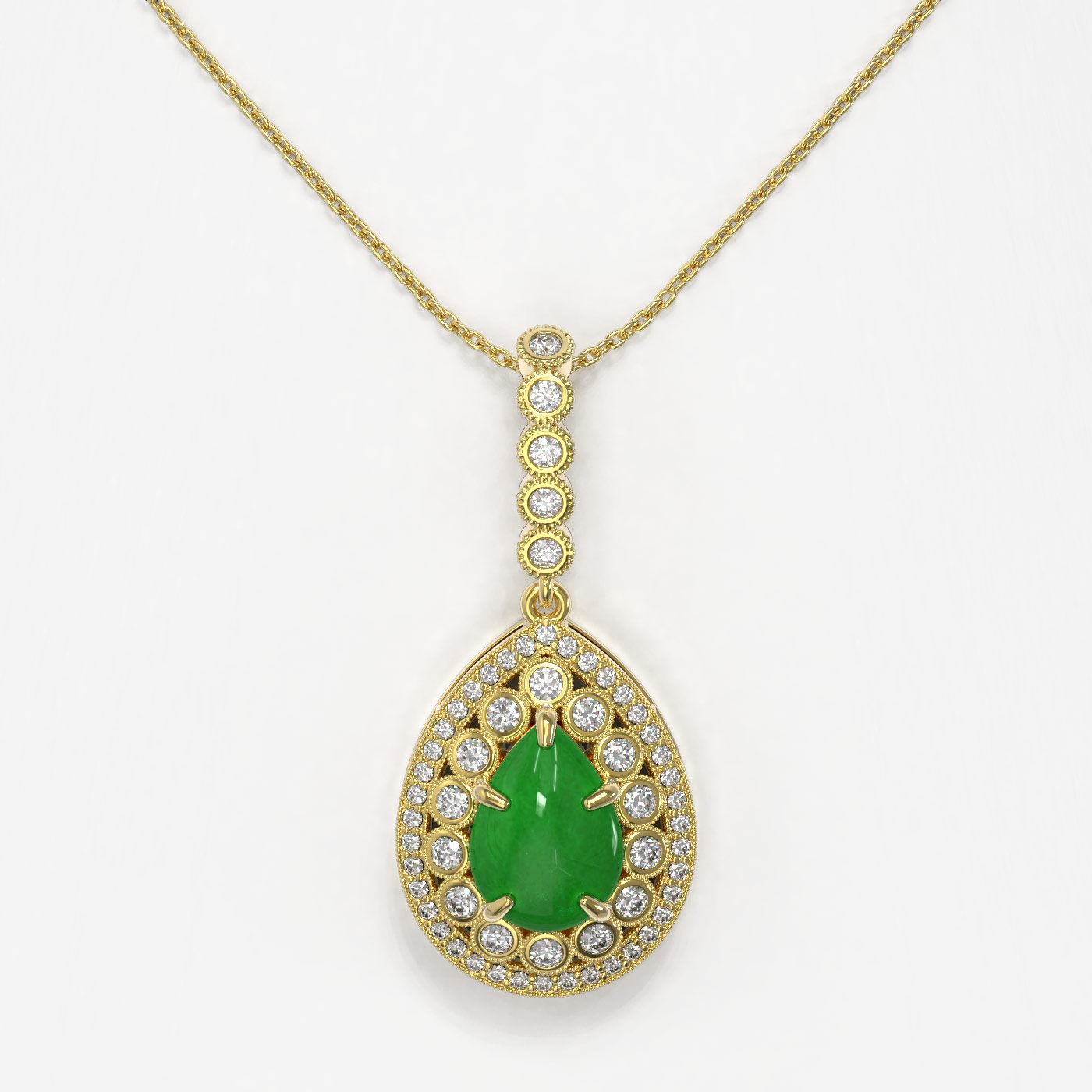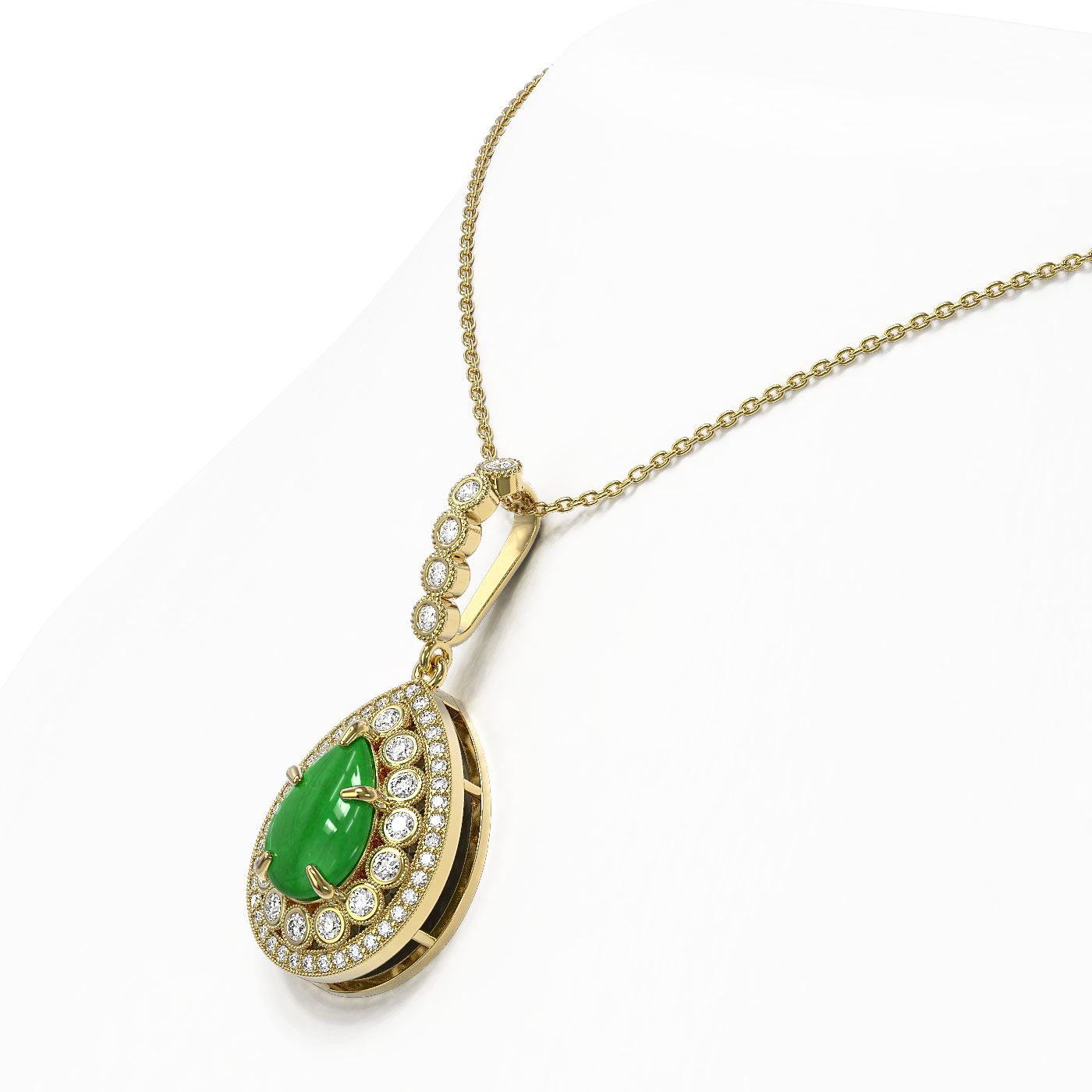 SKU: 46163 ---- 4.07 ctw Jade & Diamond Victorian Necklace 14K Yellow Gold