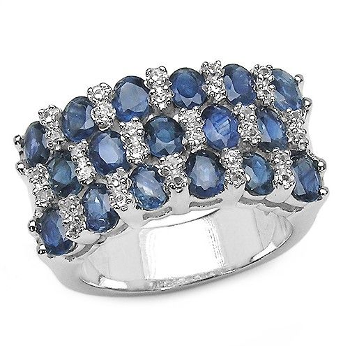 4.08 CARAT BLUE SAPPHIRE & WHITE TOPAZ .925 STERLING SILVER RING - METAL INFORMATION: .925 STERLING SILVER TOTAL CTW: 4.08CTW FINISH: RHODIUM PLATING ITEM: RING WEIGHT:8.05GMS STONE INFORMATION: SAPPHIRE BLUE QUANTITY: 17 SHAPE / SIZE: OVAL/4X3MM TOPAZ WHITE QUANTITY: 32 SHAPE / SIZE: ROUND/1.10MM - SIZE 10.5 TO SIZE 11