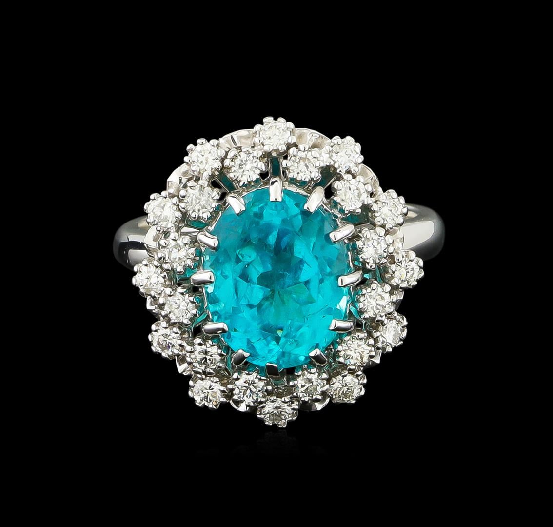 4.08 ctw Apatite and Diamond Ring - 14KT White Gold