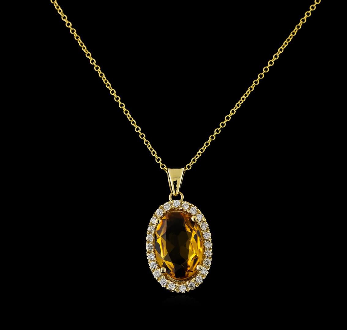 One Pendant With Chain featuring: 14KT Yellow Gold weighing 3.8 grams containing one Citrine center stone with a total weight of 4.08ct and Diamonds with a total weight of 0.36ct.