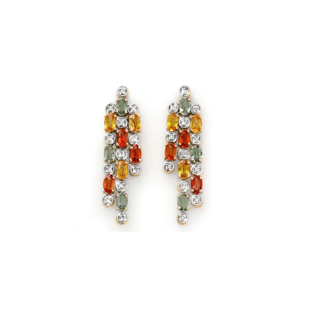 4.08 ctw Multi-Sapphire & Diamond Earrings 14K Yellow Gold