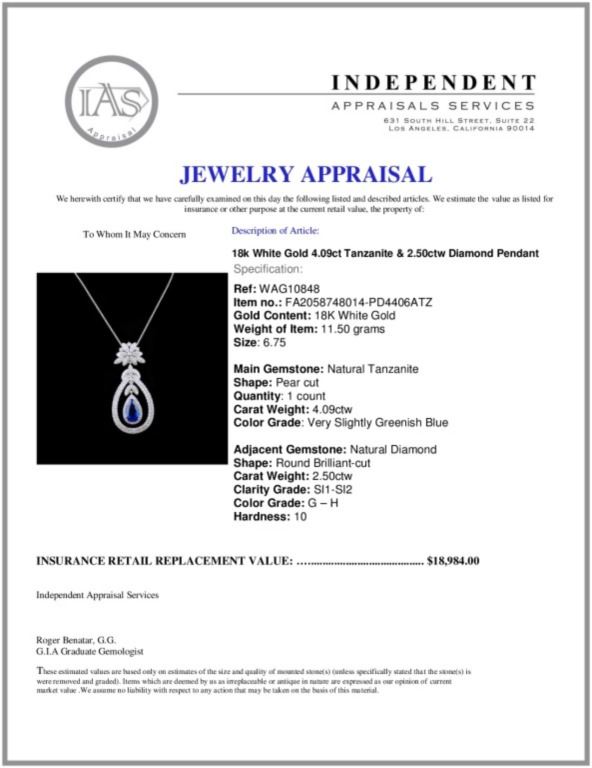 Regarding Appraised Jewelry and Loose Stones - Auctionfarm sends them out to a third party for Retail Replacement Value Appraisals, which are the most common. These types of evaluations are written for insurance needs. This would be the cost to replace the jewelry with an item of equal quality and kind, considered to be the current market price or the replacement value. This type of appraisal is done to protect you in the event of damage or loss of a valuable item. Our appraisals are conducted by independent 3rd Party appraisal firms that utilizes Certified GIA Gemologist. Appraisals should be used for verification of gemstone and/or metal weight, size, and grade only, not actual value. Appraisal value should be considered for insurance purposes only, not actual value, as price varies greatly from retail locations thru out the world. Items should not be purchased with the expectation to resell for appraisal price, or for profit.
