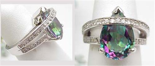 4.0ct Mystic Topaz and diamond bypass ring with .42ctw of diamonds in 14kt white gold. 7.5gr finger size 6