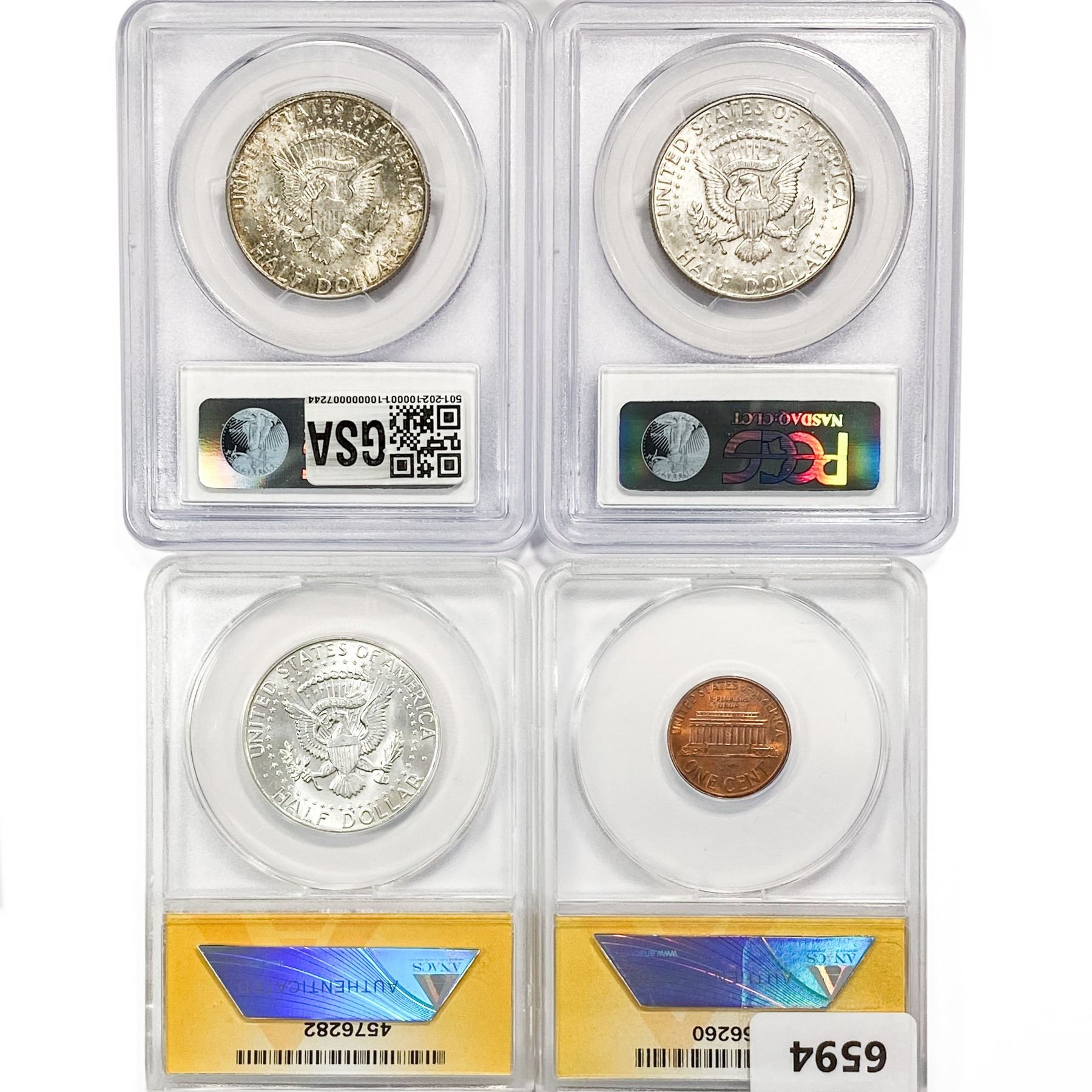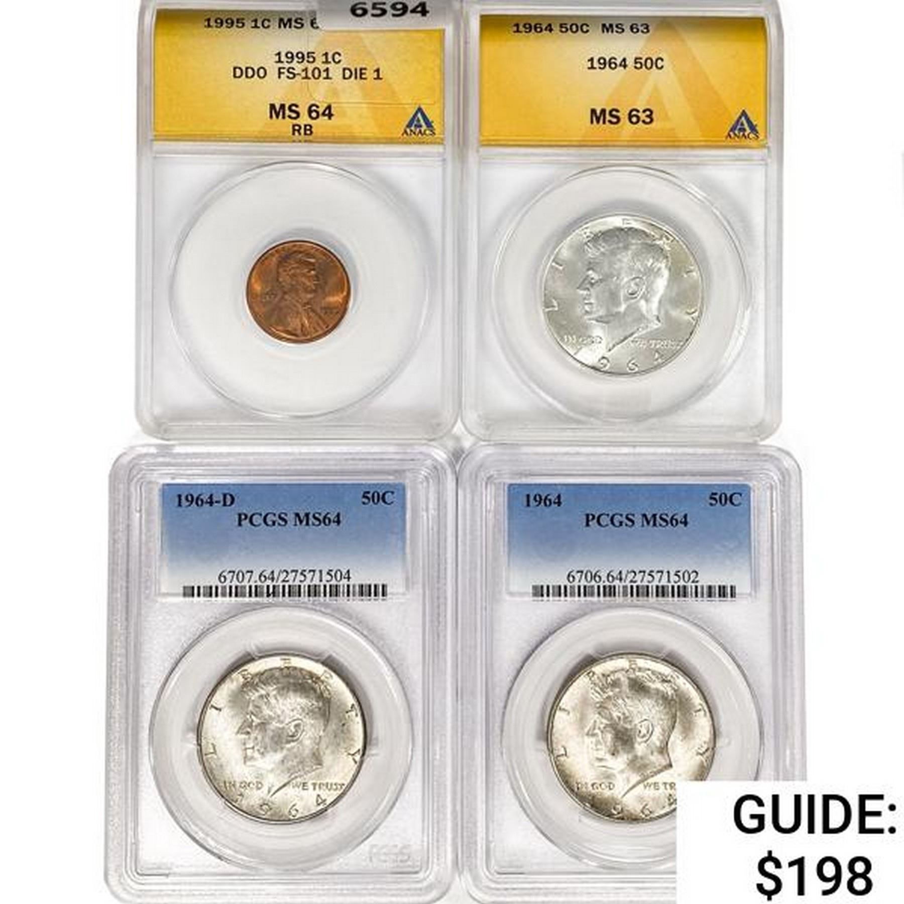 [4] 1 1C, 3 50C ANACS,PCGS MS63,64 1964-1995