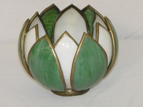 4 1/2" HANDEL TYPE GREEN & WHITE SLAG GLASS LOTUS SHADE, UNSIGNED
