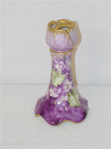 4 1/2" LIMOGES HAND PAINTED HAT PIN HOLDER DECORATED W/ VIOLETS & GOLD TRIM - SOME WEAR TO GOLD