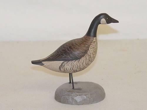 4 1/2" MINIATURE CANADA GOOSE DECOY ON A WOODEN BASE SIGNED GORDON R. HARDE (HARDECOYS CUSTOM CARVING)