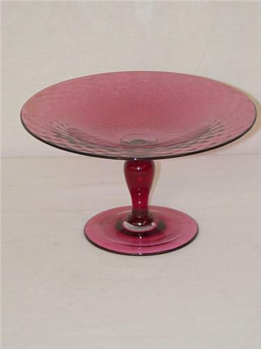 4 1/2" PAIRPOINT CRANBERRY PEDESTALED COMPOTE - UNMARKED W/ POLISHED BOTTOM, SMALL STONE IN GLASS