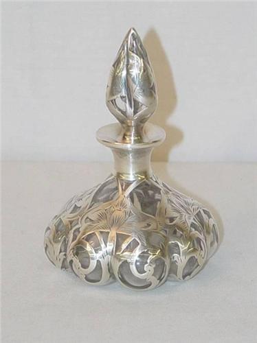 4 1/2" STERLING OVERLAY PERFUME BY ALVIN - MINOR SCRATCHES TO GLASS;