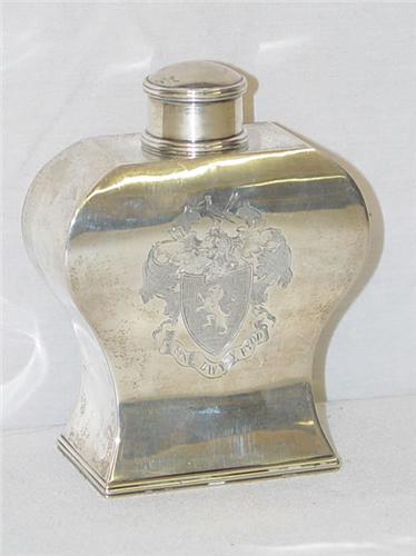 4 1/2" STERLING TEA CADDY W/ ENGRAVED CREST DECORATION-ONLY MARKED STERLING, 6.5 TROY OZ. - DENT TO BASE RIM, WEAR