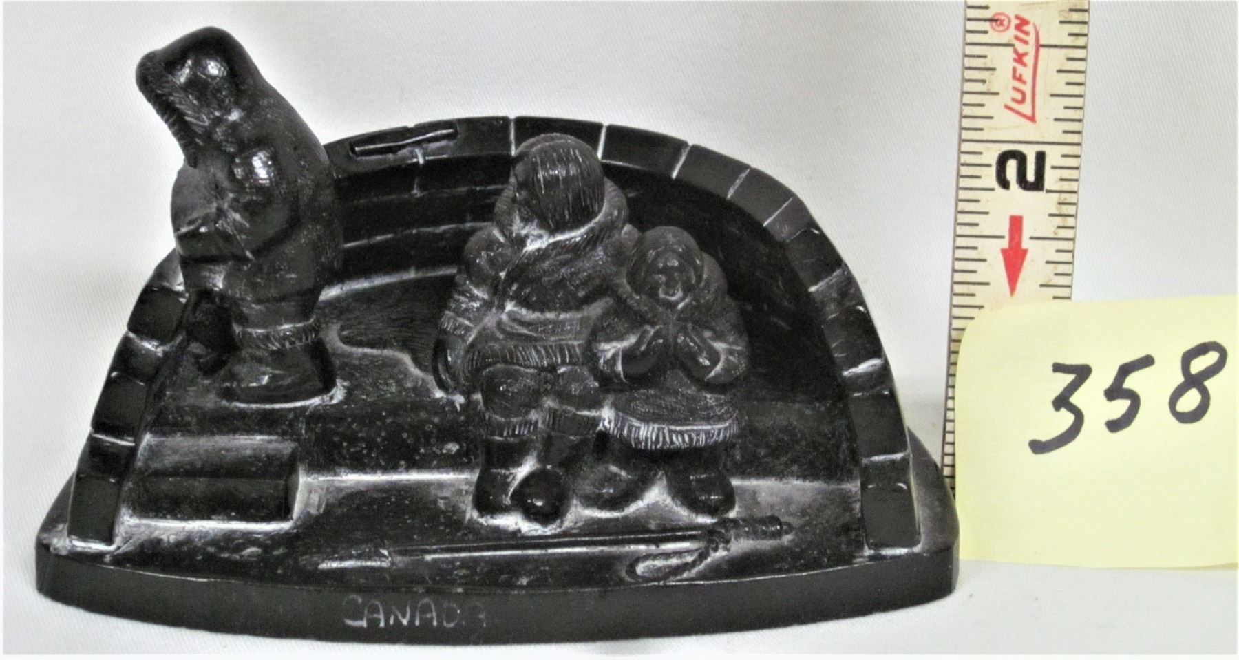 4 1/2" Soapstone Carving Inuit Building Igloo Dated 1973