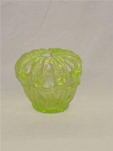 4 1/2" VASELINE BLOWN GLASS WIG STAND (POSSIBLY SANDWICH);