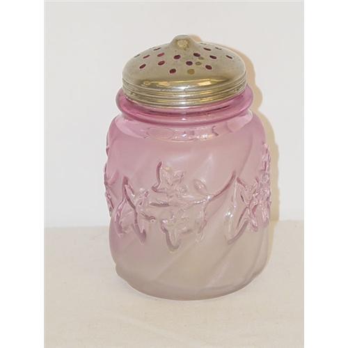 4 1/2" VICTORIAN SUGAR SHAKER - ROYAL IVY FROSTED RUBINA W/ TIN LID - GOOD CONDITION