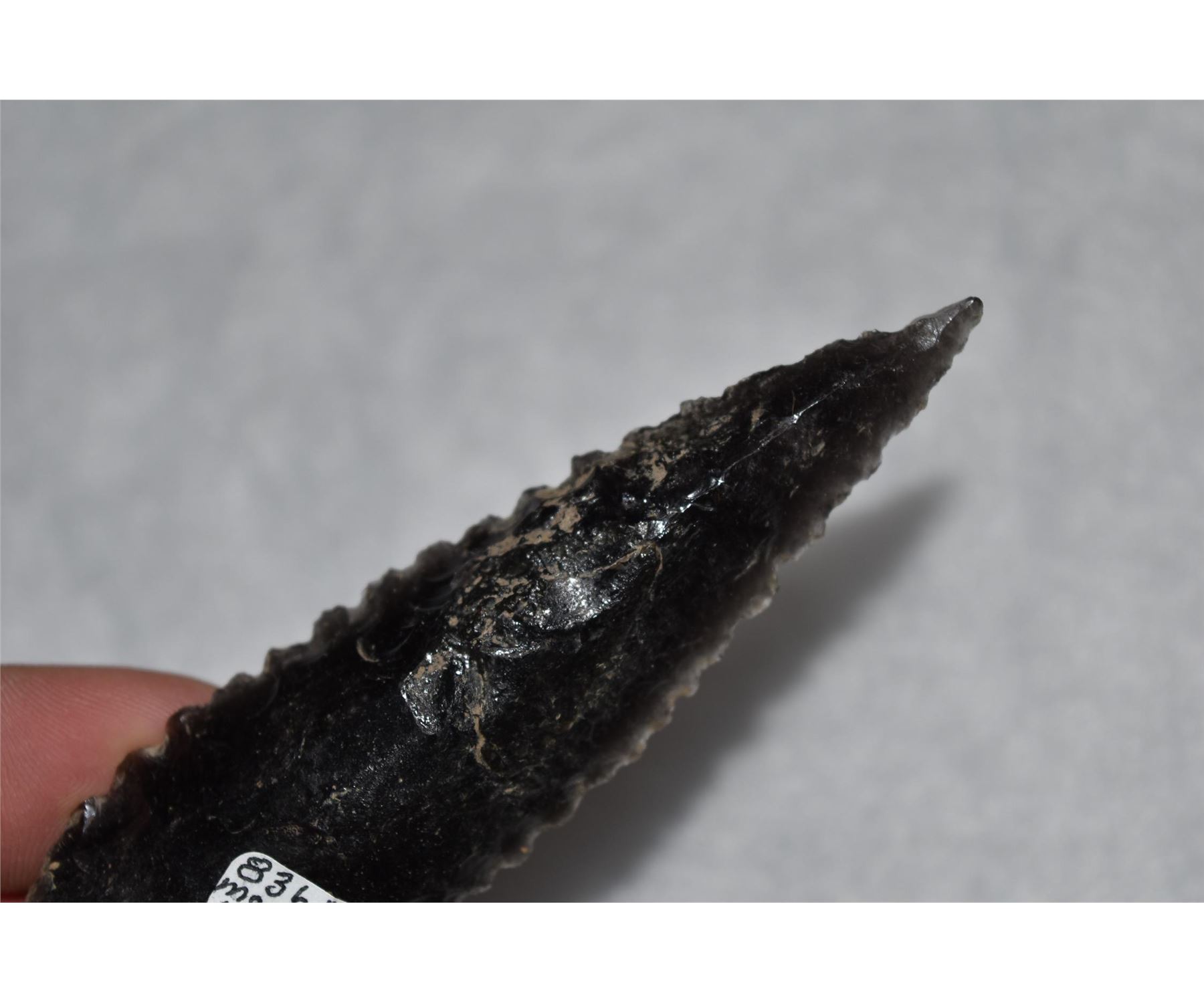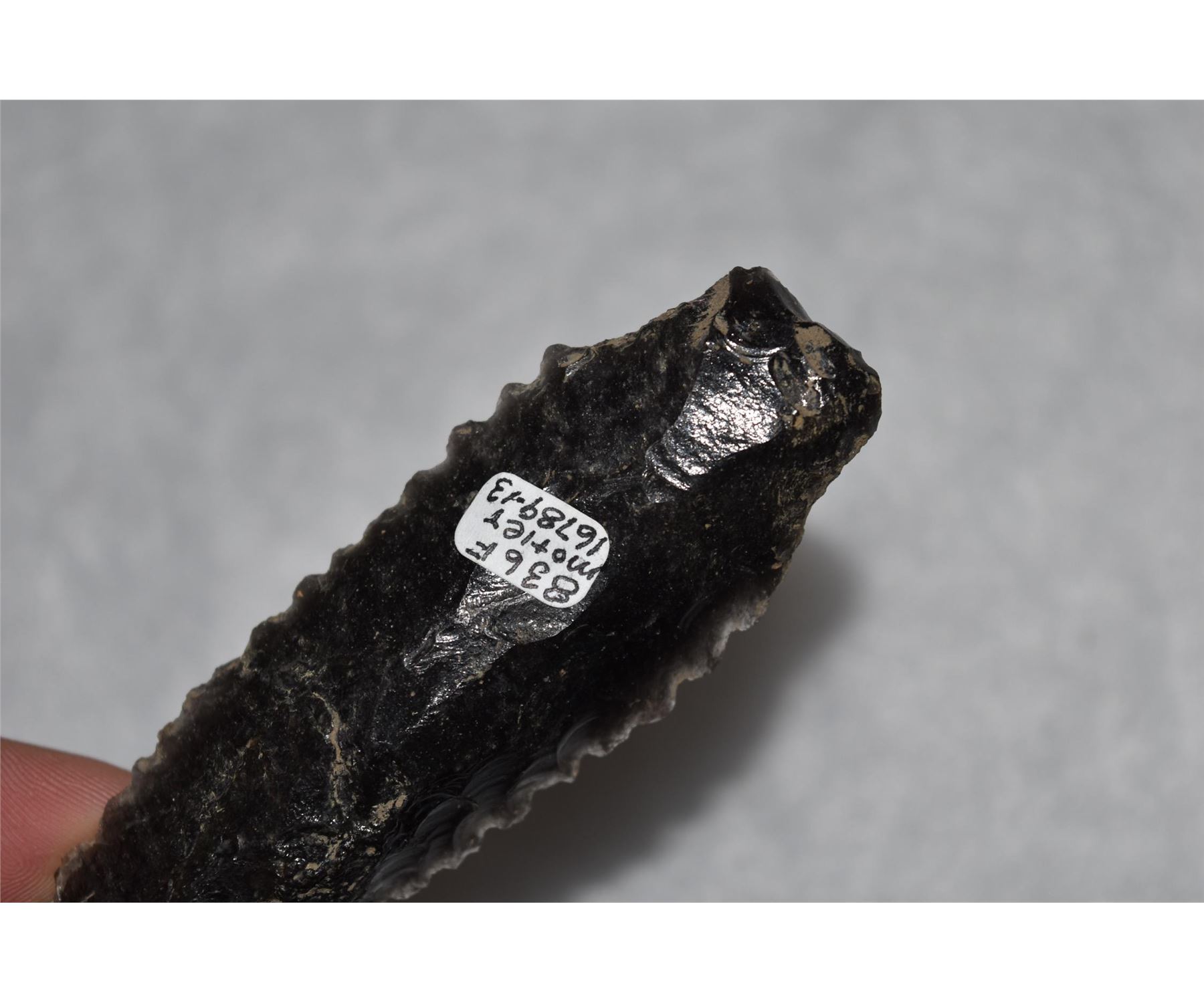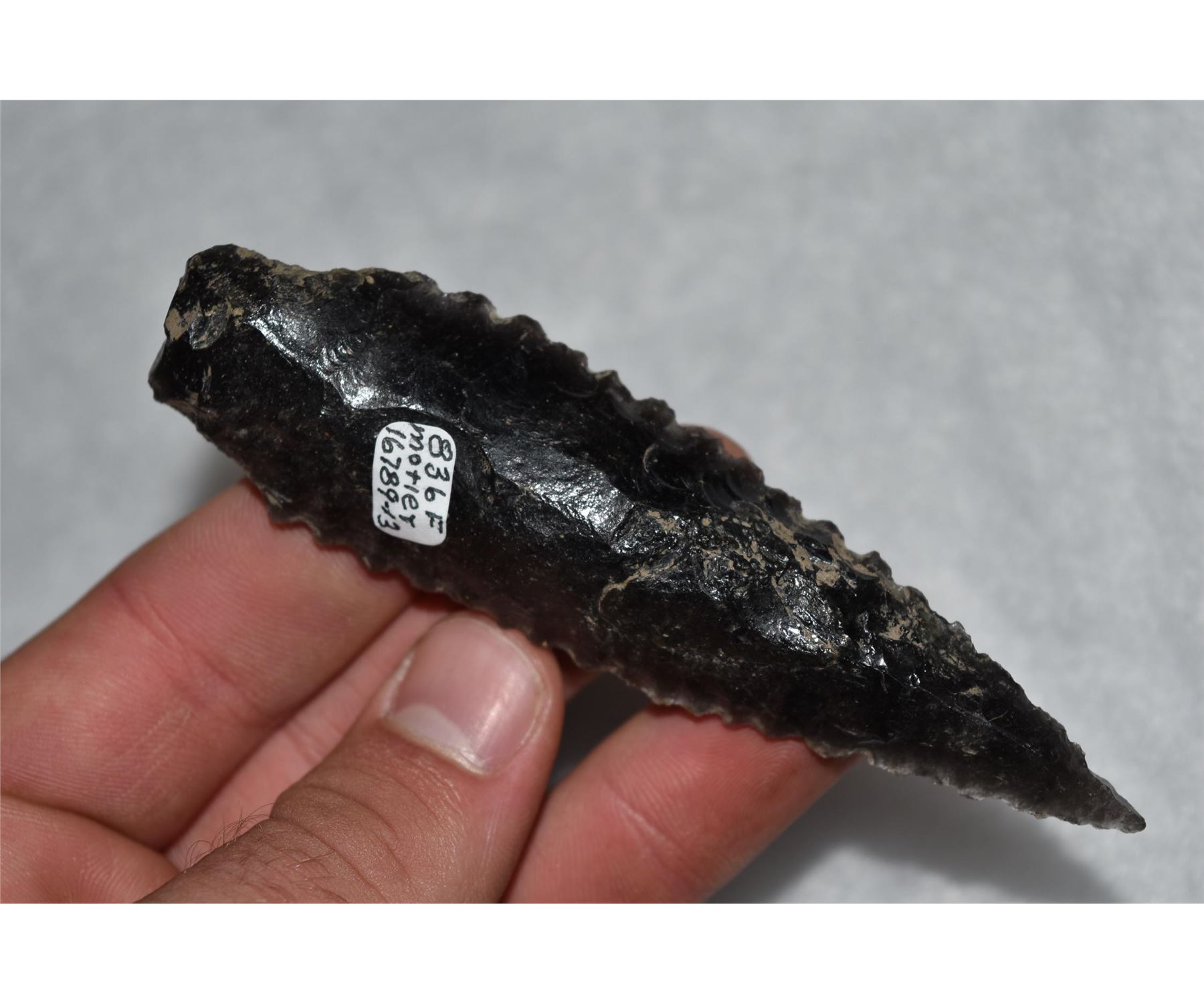 5 1/4" Cascade Shouldered, Motley COA, Santa Barbara Co, California, Obsidian, Well made and serrated, Herb Mangold Collection