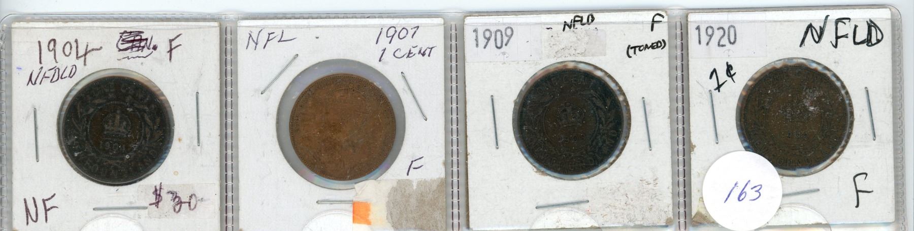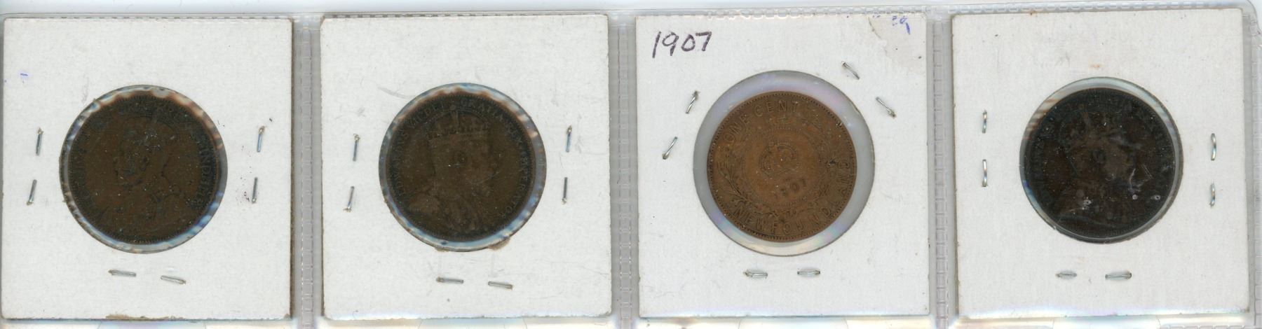 4 1¢ NFLD coins 1904, 07, 09, 20