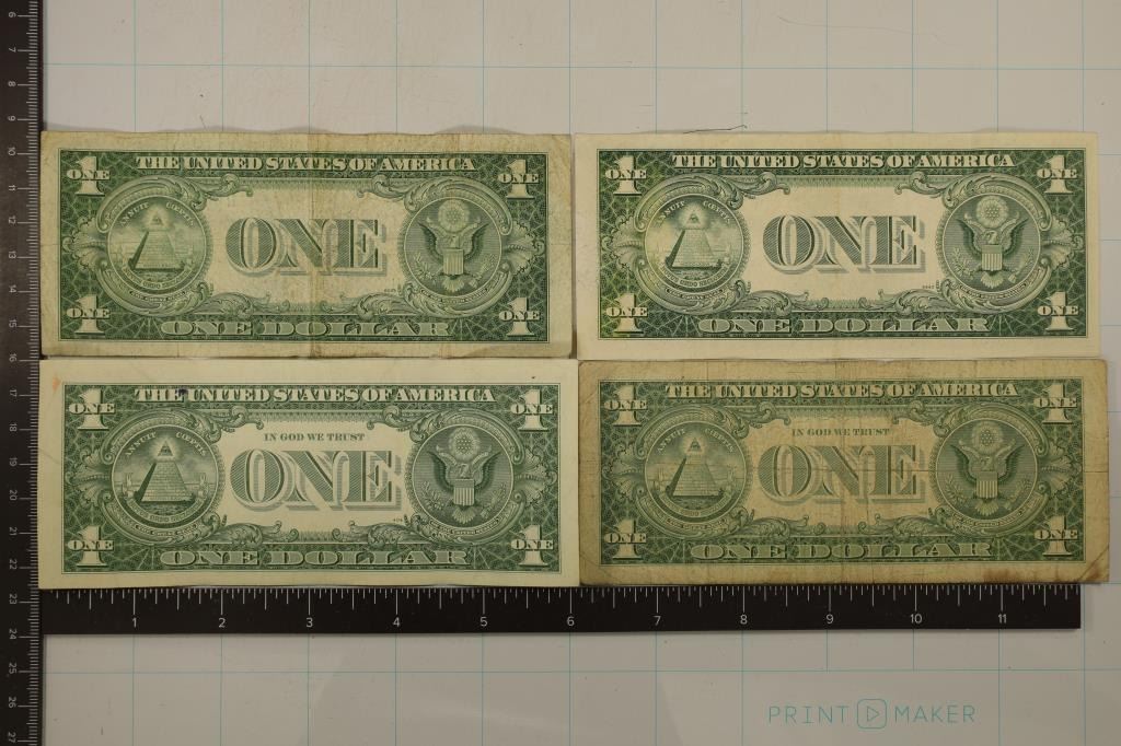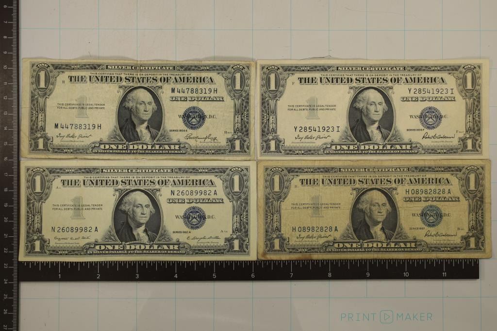 2 OF THE BILLS ARE WHITER THAN THE OTHERS, STAINS NOTED ON ALL BILLS