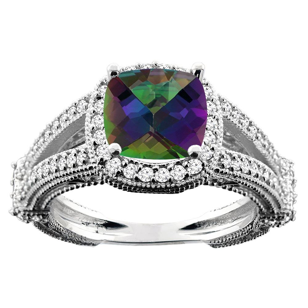 REF-55M3A - SKU: SC-CY408302 ---- 4.10 CTW Mystic Topaz & Diamond Ring 14K White Gold