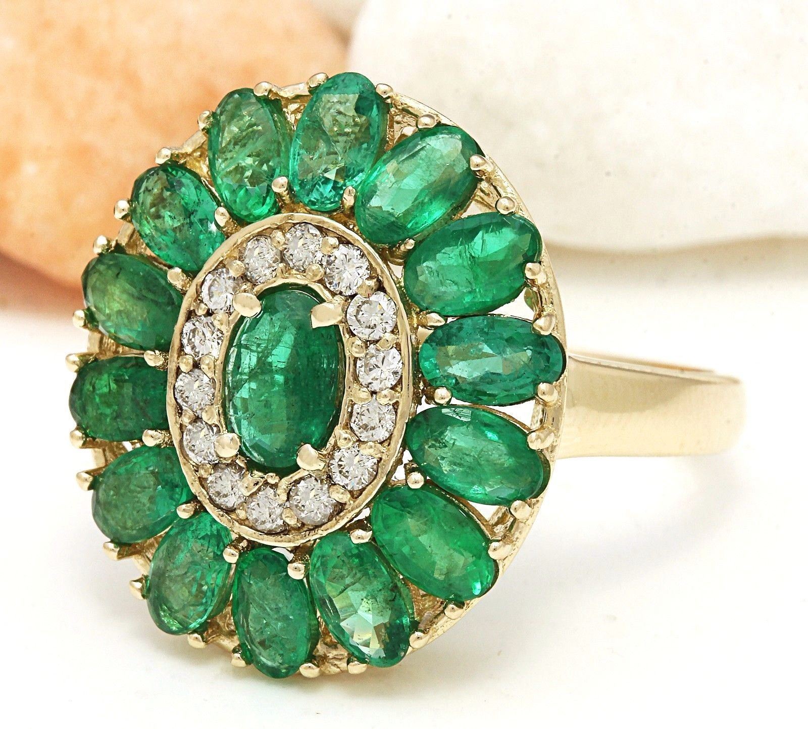 4.10 Carat Natural Emerald 14K Solid Yellow Gold Diamond Ring