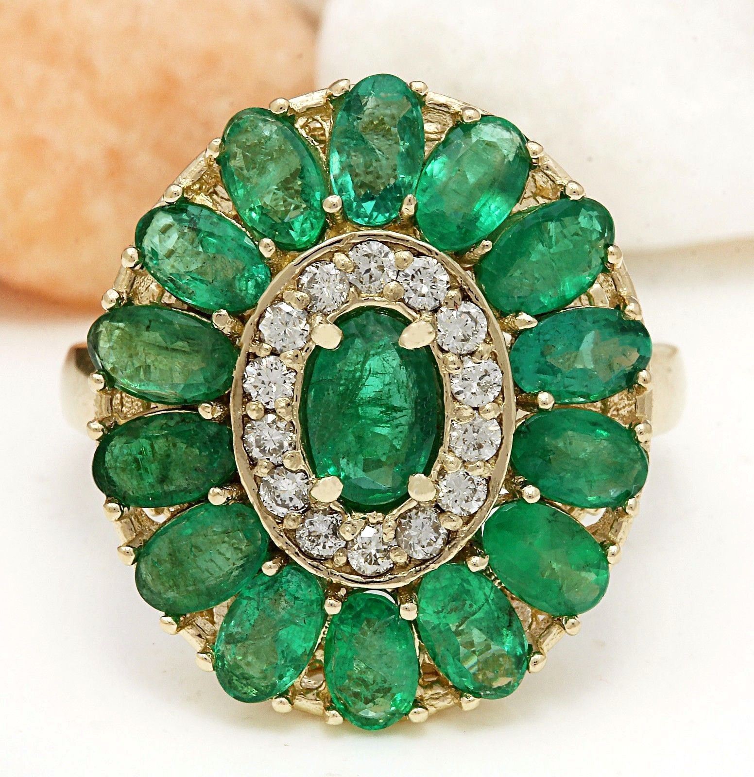 4.10 Carat Natural Emerald 18K Solid Yellow Gold Diamond Ring