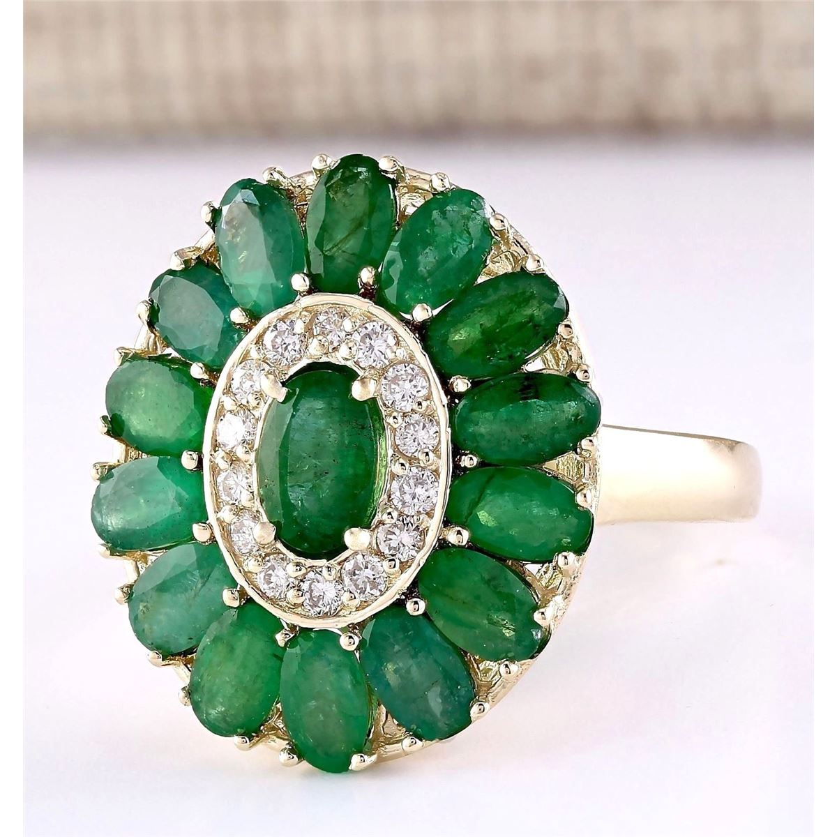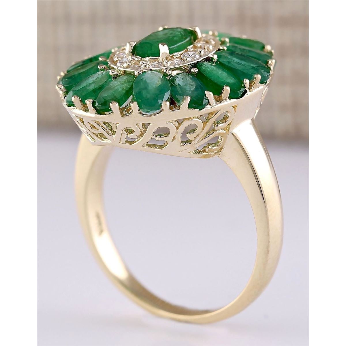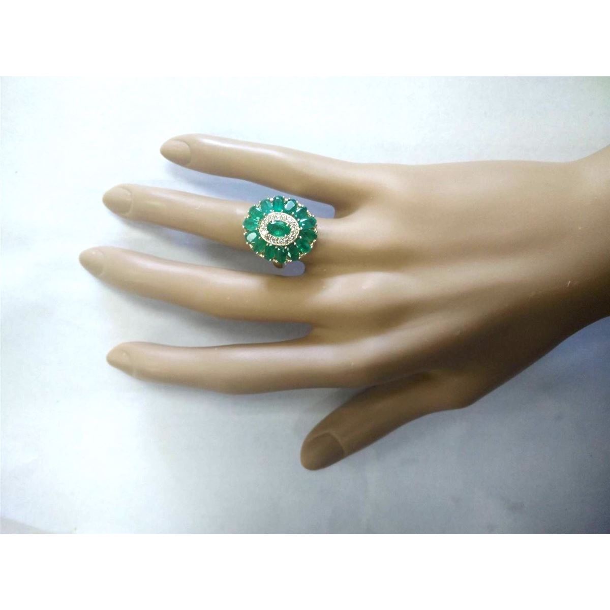 Stamped: 14K Ring Size: 6.75 Total Ring Weight: 5.08 Grams Diamond Weight: Total natural diamond weight is .30carat. SI1-SI2 clarity / G-H color Gemstone Weight: Total Natural Emerald Weight is 3.80ctw Main Stone Color: Green Face Measures: 20.33x17.60mm SKU: [703846]
