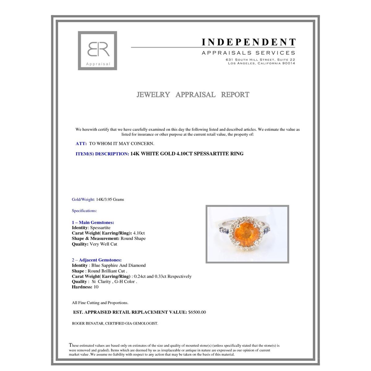 14K WHITE GOLD NATURAL SPESSARTITE RING:3.945 GRAMS/DIAMOND:0.33CT/BLUE SAPPHIRE:0.24CT/SPESSARTITE:4.10CT/#GVR1051