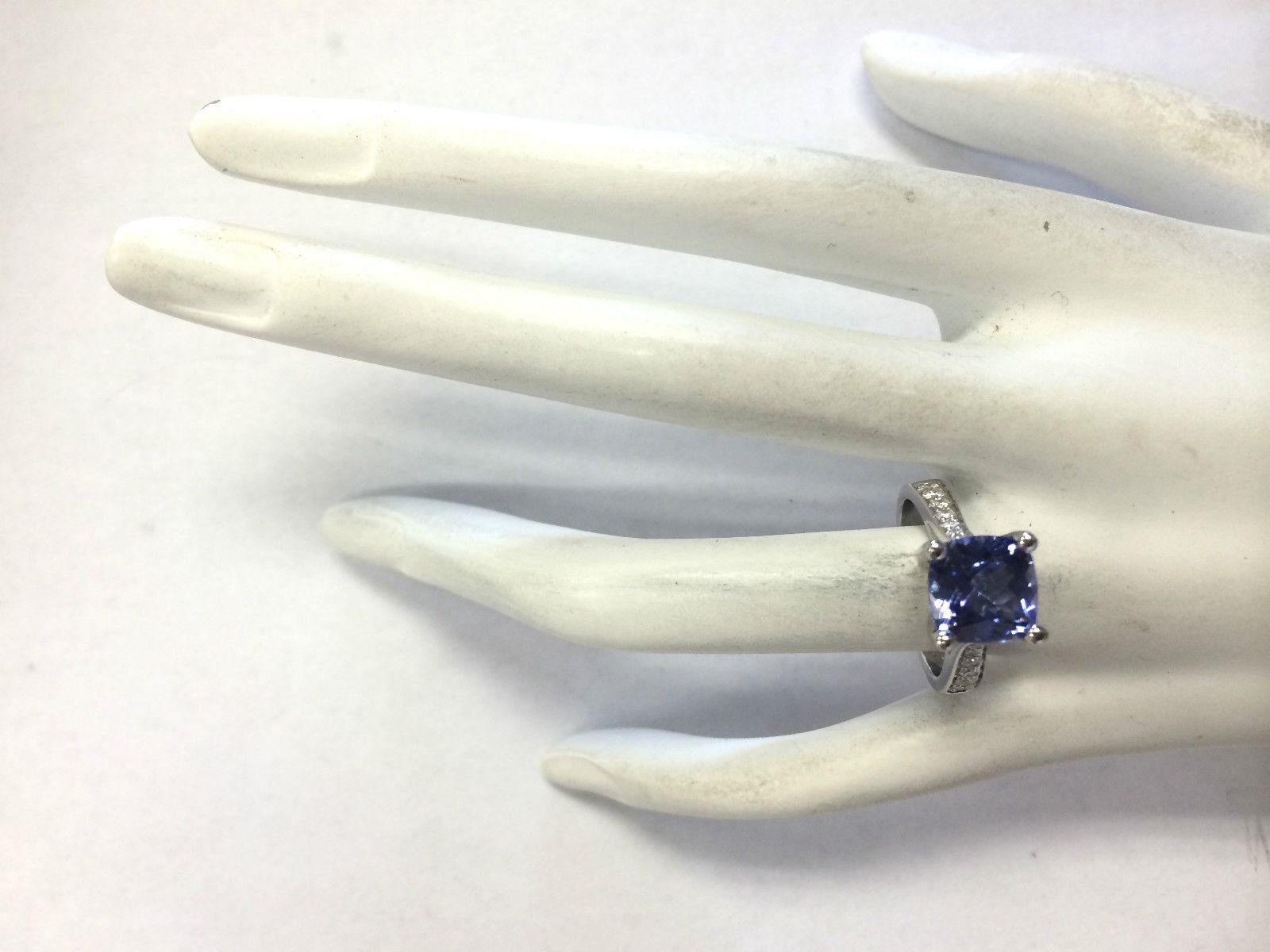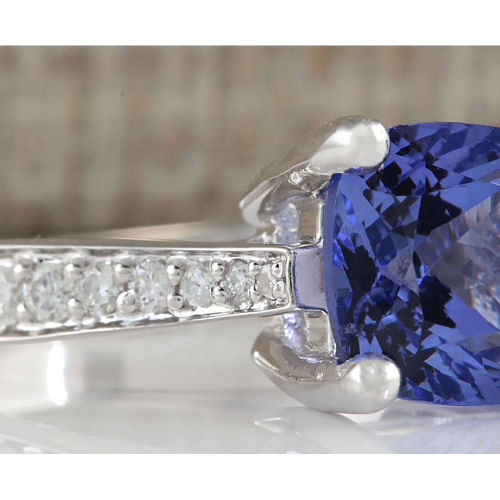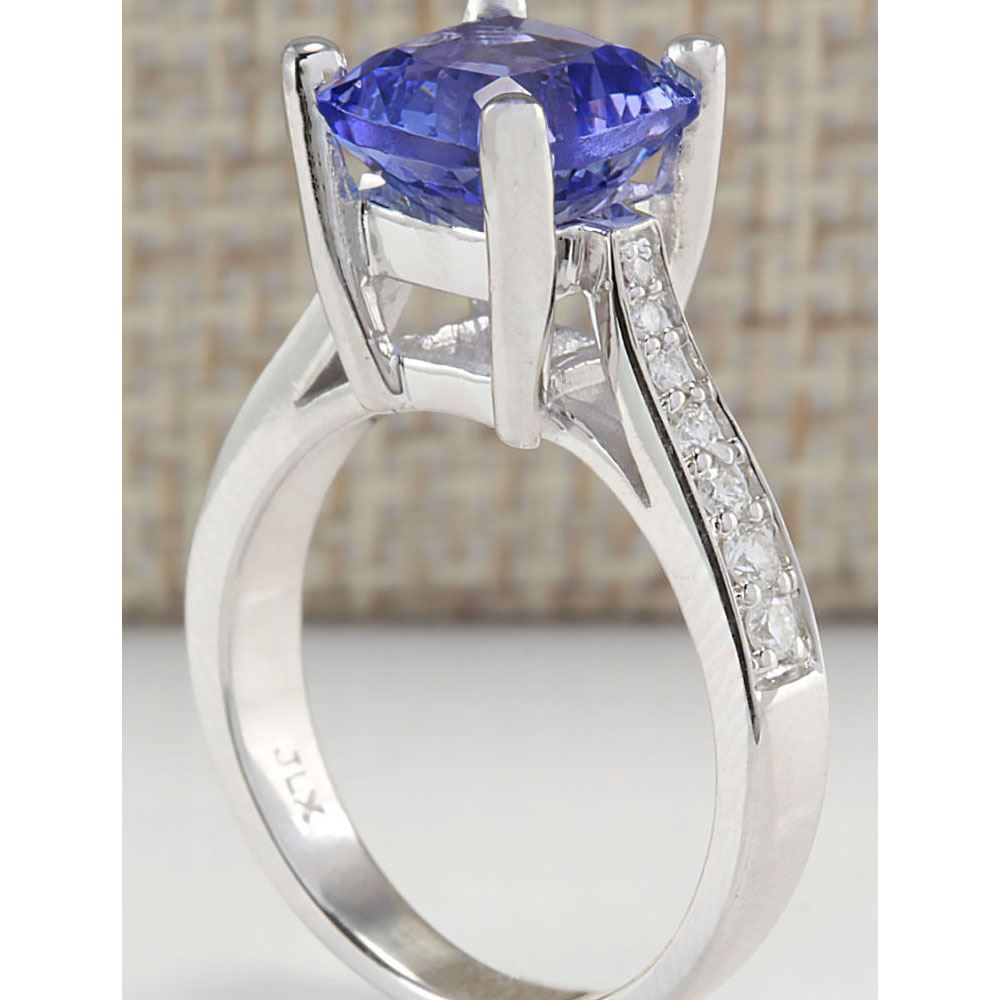 4.11 CTW Natural Blue Tanzanite And Diamond Ring 18K Solid White Gold