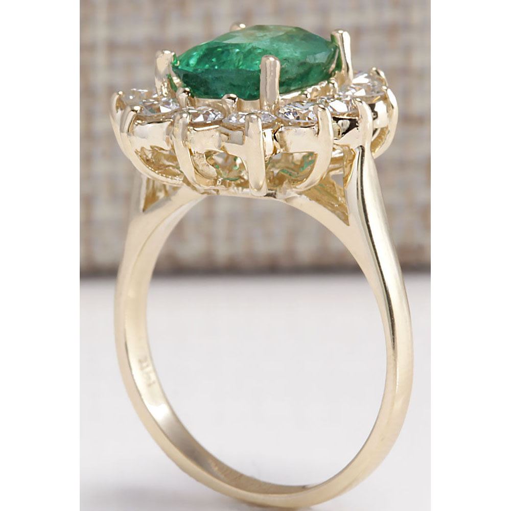 4.11 CTW Natural Emerald And Diamond Ring 14K Solid Yellow Gold