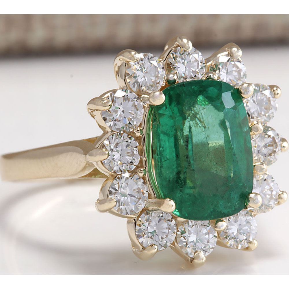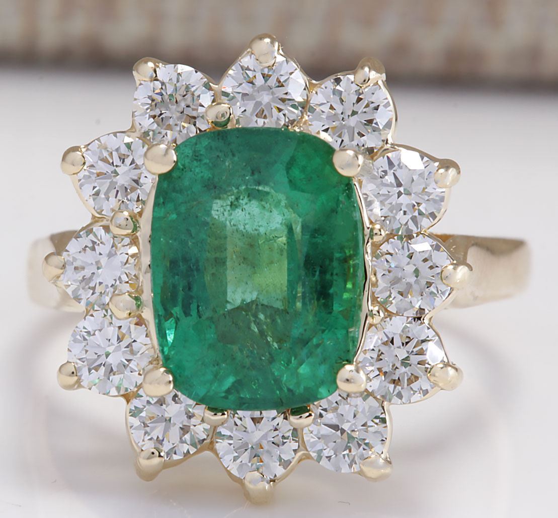 4.11 CTW Natural Emerald And Diamond Ring 18K Solid Yellow Gold