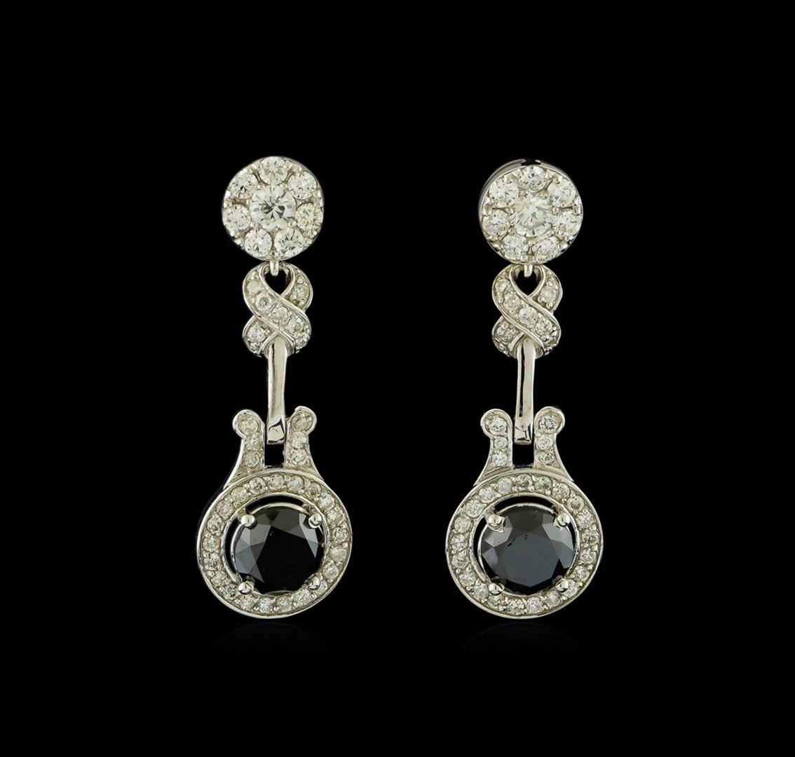 One pair electronically tested 14KT white gold lady's combination cast & assembled fashion dangle earrings with friction posts with a bright polish finish. The featured pair of lady's dangle earrings have a drop of 33.2 millimeters in length. Identified with markings of "14K 585". Condition is new, good workmanship. Containing: Two prong set round brilliant cut diamonds, measuring 6.34 - 6.24 x 4.88mm (depth est.) , 18.00.%. GTCF approximate total weight of 2 Stones = 2.80ct. Colored gemstones are presumed to have been subjected to commonly used enhancement processes. Graded in the setting. Cut Fair Two prong set round brilliant cut diamonds, measuring 3.40 - 3.35 x 2.03mm (depth est.) approximate total weight of 2 Stones = 0.28ct. Graded in the setting. Clarity: VS-2 to SI-1. Color: H - I. Cut Good Fourteen prong set round brilliant cut diamonds, measuring 2.10 - 2.00 x 1.25mm (depth est.) approximate total weight of 14 Stones = 0.45ct. Graded in the setting. Clarity: SI-1 to SI-2. Color: H - I. Cut Very Good Sixty-Eight prong set round brilliant cut diamonds, measuring 1.40 - 1.25 x 0.82mm (depth est.) approximate total weight of 68 Stones = 0.59ct. Graded in the setting. Clarity: SI-1 to I-1. Color: H - I. Cut Good. Total Weight of Diamonds 4.12ct. Total Weight of Earrings 5.80gm. GAS Appraised at $7,045.00.