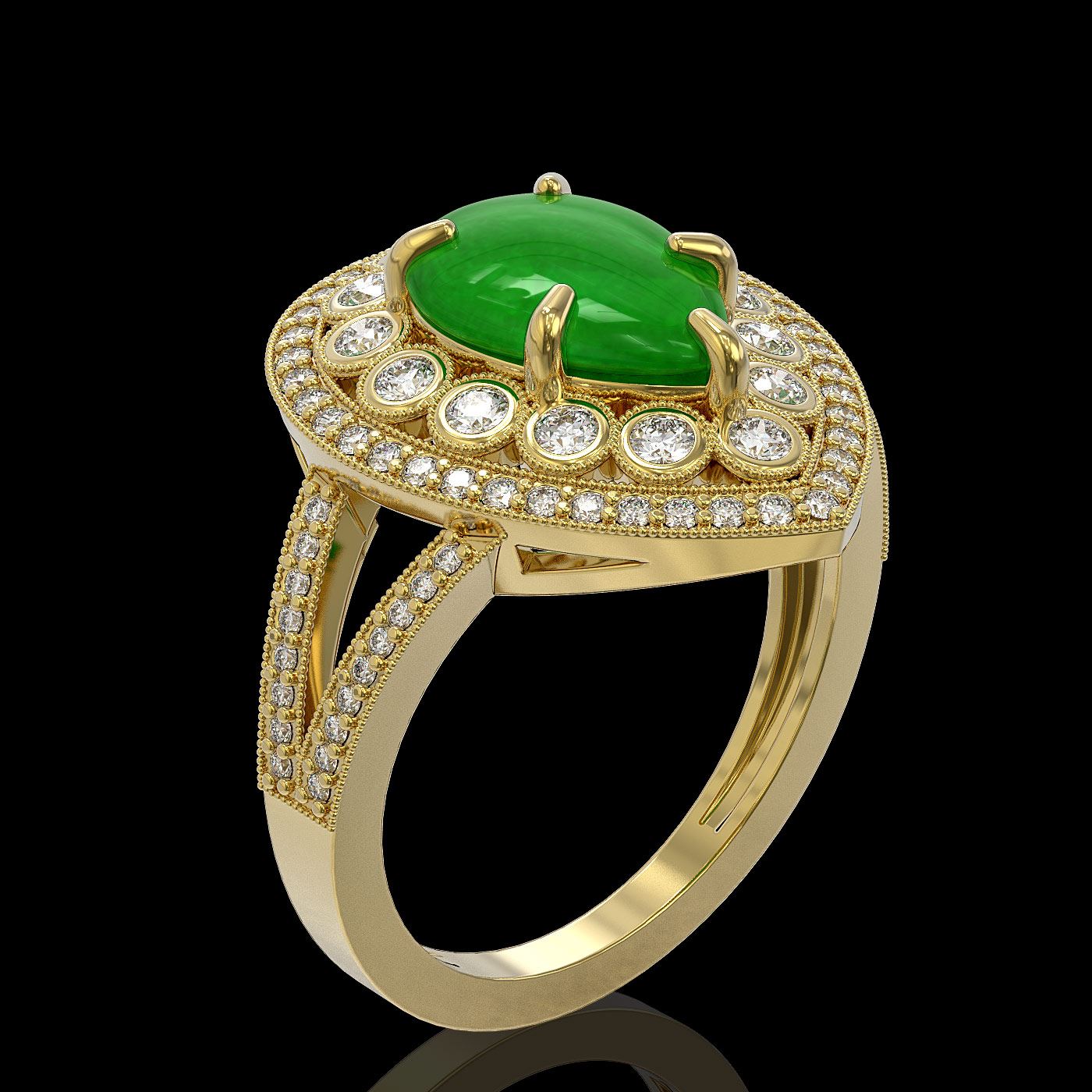 REF-134W4H - SKU: 46145 ---- 4.12 ctw Jade & Diamond Victorian Ring 14K Yellow Gold
