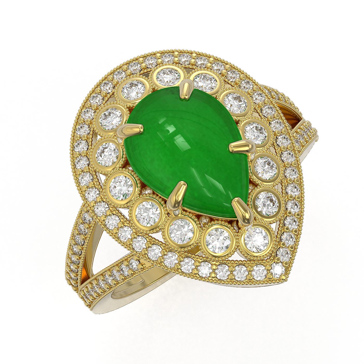 SKU: 46145 ---- 4.12 ctw Jade & Diamond Victorian Ring 14K Yellow Gold