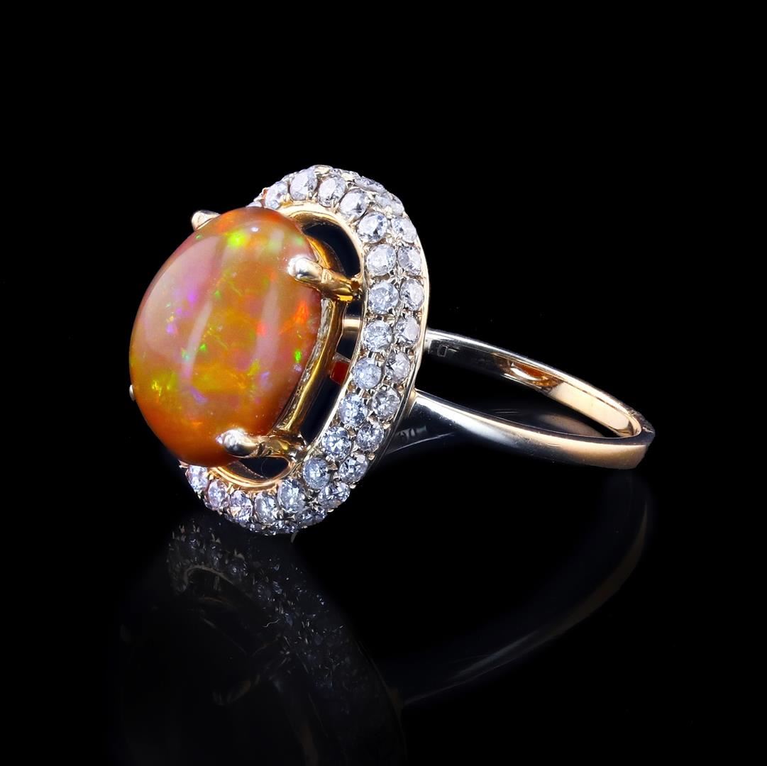 4.12ct Opal and 1.06ctw Diamond 14K Yellow Gold Ring. Please see Photos and Description for all available information. This elegant diamond ring on a 14K yellow gold band is a dainty piece made to perfection. The 4.12ct opal and 1.06ctw diamond, the opal and diamond combination is the perfect match of fire, elegance, and radiance. Ring Size 6 3/4