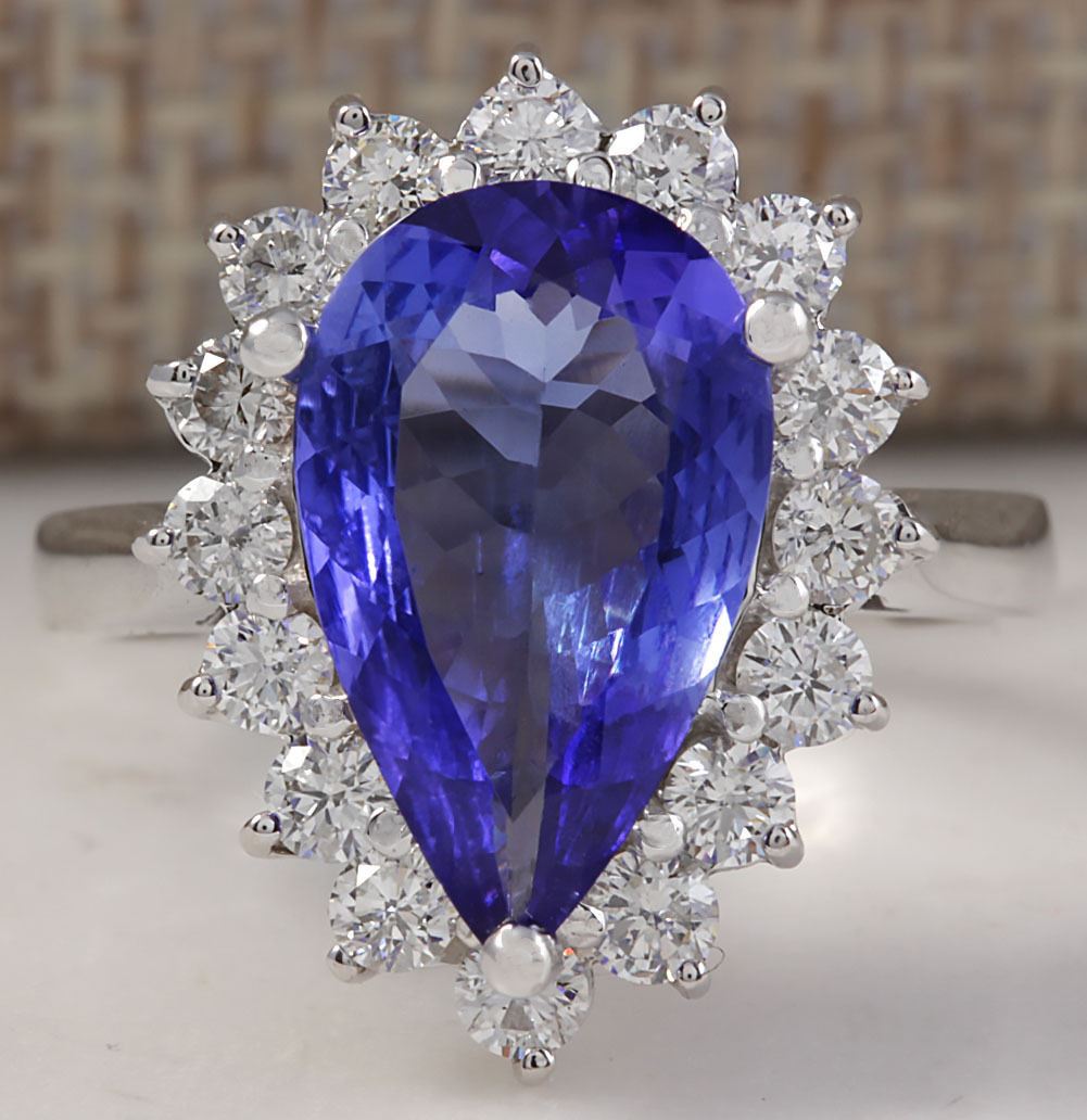 4.13 CTW Natural Blue Tanzanite And Diamond Ring In 14K Solid White Gold