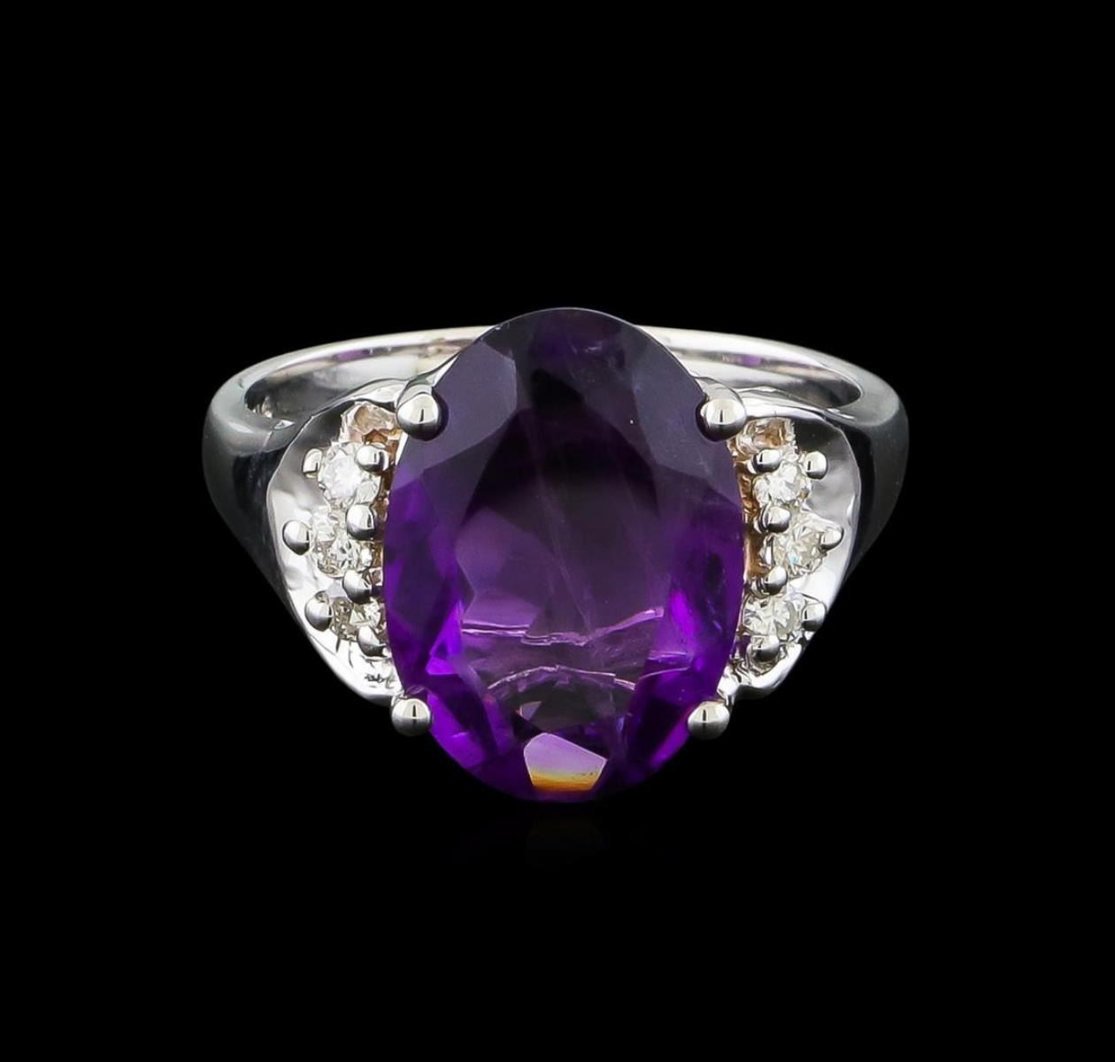 One Ring featuring: 14KT White Gold weighing 4.34 grams containing one Amethyst center stone with a total weight of 4.13ct and Diamonds with a total weight of 0.16ct.
