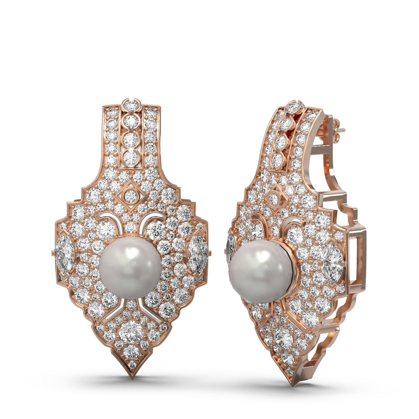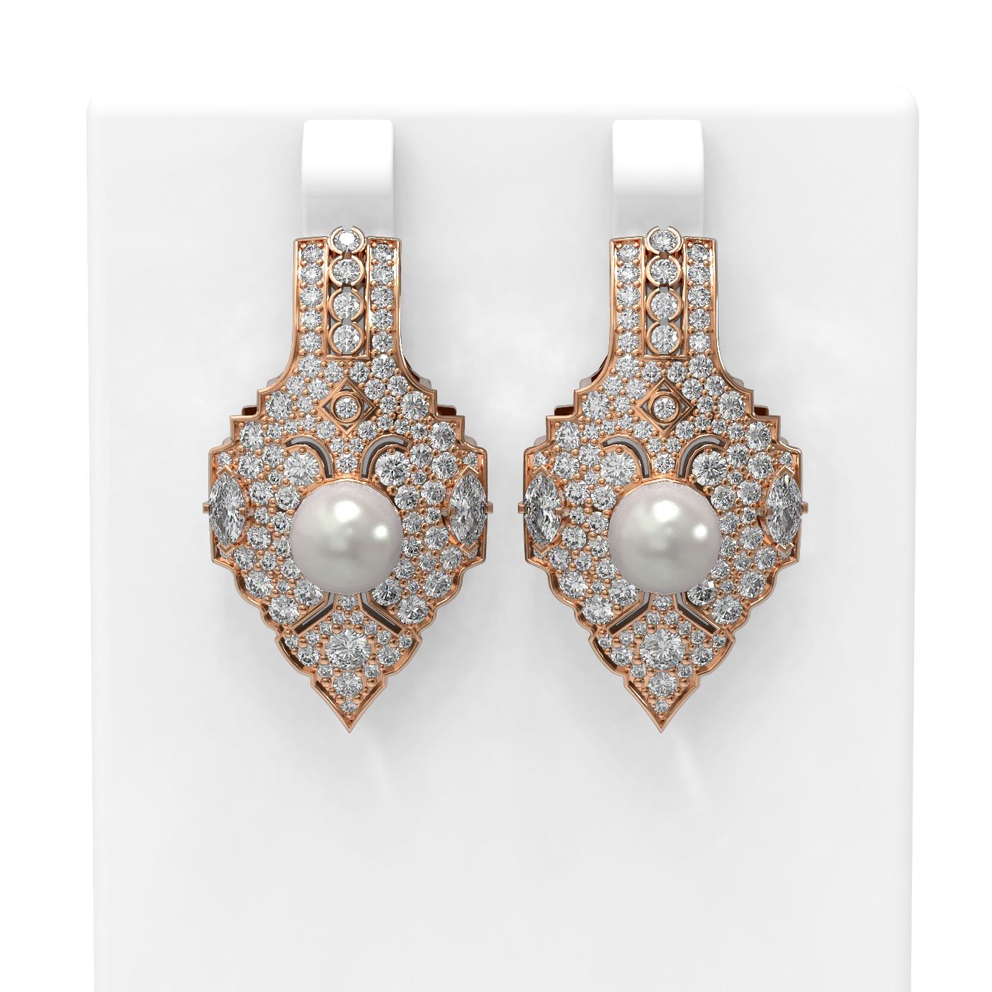 4.14 ctw Diamond and Pearl Earrings 18K Rose Gold