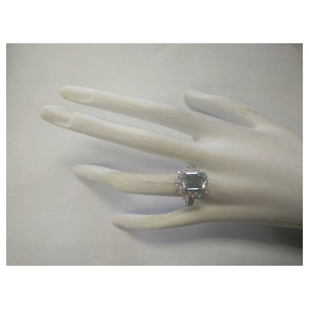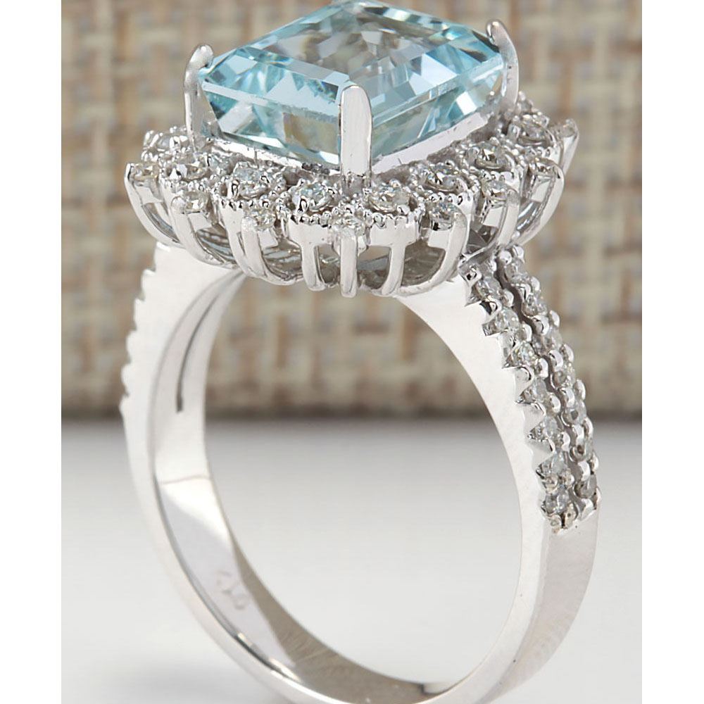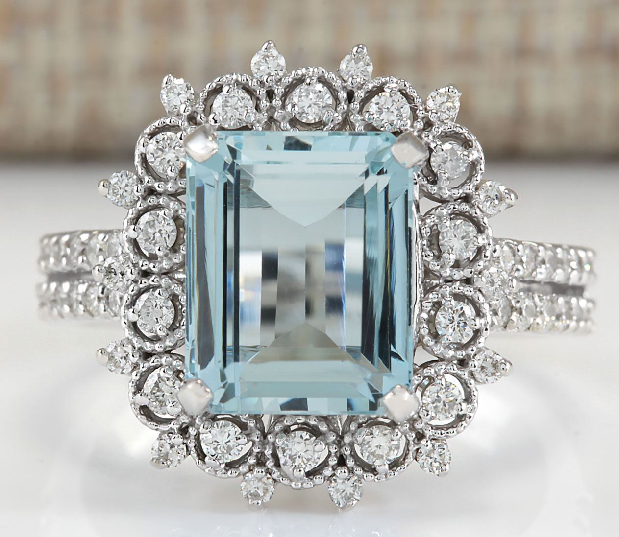4.15 CTW Natural Aquamarine And Diamond Ring In 14K White Gold