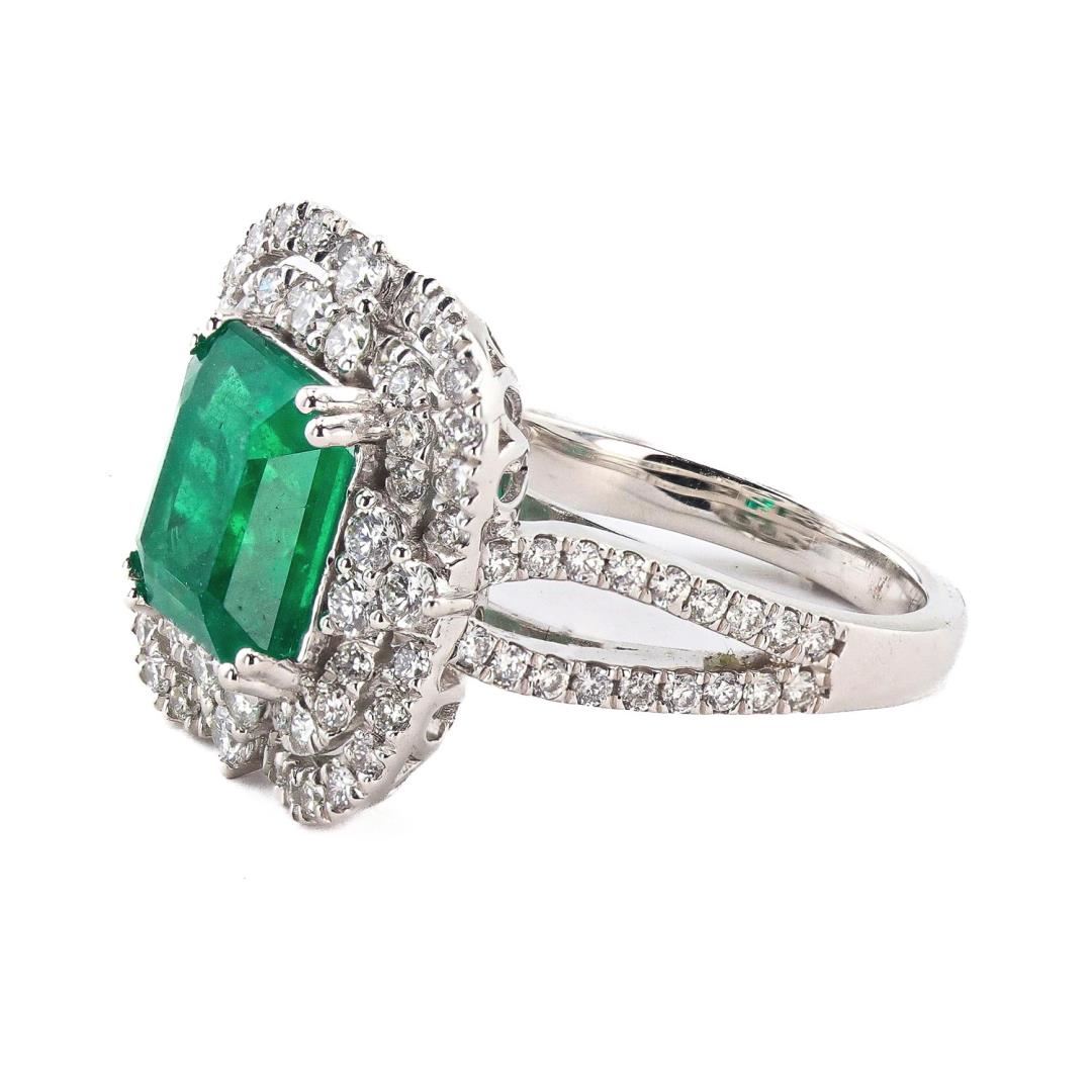 One polished. stamped. and tested platinum ring marked Oscar Friedman. The ring is mounted with 1 genuine GIA certified emerald center stone weighing 4.15 carats, and 92 genuine round diamonds weighing approximately 1.38 carats. This item weighs 13.9 grams, condition is new, excellent workmanship. #MAIN GEMSTONE# GIA Report No.: 6224483832; Species: Natural Beryl; ; Variety: Emerald; Shape: Octagonal; Cutting Style: Step Cut; Measurements: 9.95 x 9.49 x 6.50mm; Weight: 4.15 carats; Color: Green; Transparency: Transparent; Treatment: Clarity Enhanced (F2); Refractive Index: 1.564 - 1.595 DR; Birefringence: 0.005 to 0.009; Hardness: 7.5 - 8 #ADJACENT GEMSTONES ON RING# Identity: Natural Diamond; Shape: Round; Cutting Style: Brilliant Cut; Quantity: 92 Diamonds; Measurements: 1.3 - 2.0mm; Total Weight: 1.38 carats; Color Grade: F-G; Clarity Grade: VS2-SI1; Refractive Index: 2.417; Hardness: 10; EMERALD WEIGHT: 4.15 ct; TOTAL DIAMOND WEIGHT: 1.38 cts; WEIGHT OF ITEM: 13.9 grams; METAL: Platinum #Size: 7